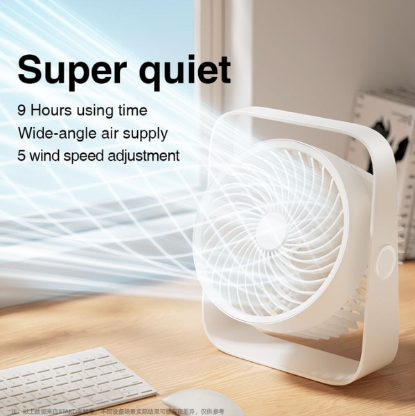 Có thể cầm tay khi di chuyển hoặc đặt trên bàn với chân đế gập chắc chắn. Một số mẫu còn xoay được 180° để điều chỉnh hướng gió linh hoạt.Pin bền – dùng lâu