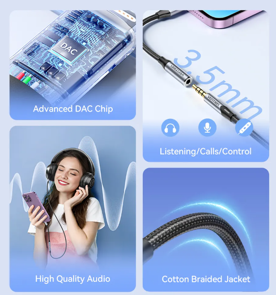 Cáp Chuyển Âm Thanh Lightning to 3.5mm VENTION BMB (Male to Female, 48KHz@16bit, DAC Chip)