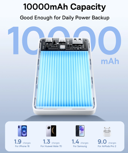 Pin Dự Phòng USAMS CD189 9000mAh 20W (Digital Display, USB+Type-C port, Trong suốt, PD + QC3.0)