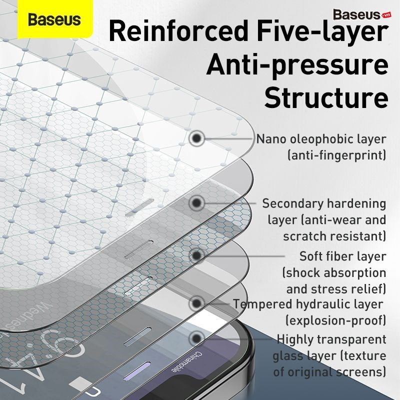 Kính cường lực cho iPhone 12 Series Baseus 0.15mm Full Coverage Tempered Glass Film 2020 (Secondary Hardening, 2 miếng/bộ)