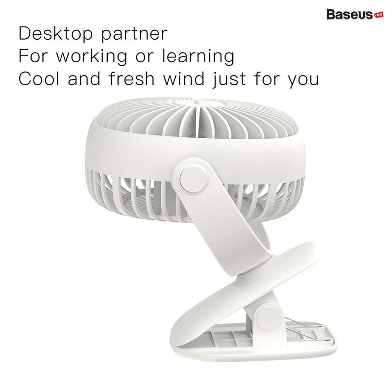 Quạt kẹp mini để bàn Baseus Box Clamping Fan (Pin sạc 2000mAh, 3 cấp tốc độ, đèn LED, xoay 360 độ )
