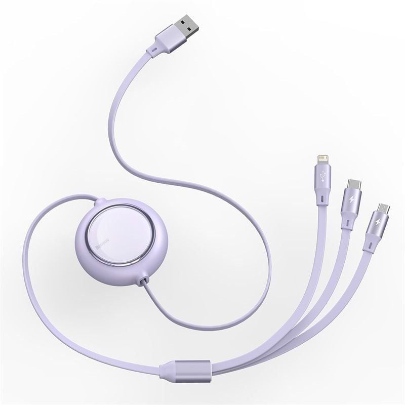 Cáp sạc dây rút 3 đầu Baseus Bright Mirror 3 in 1 (Type C/ Micro USB/ Lightning, 3.5A/ 1.2m, Retractable Fast Charge Data Cable)