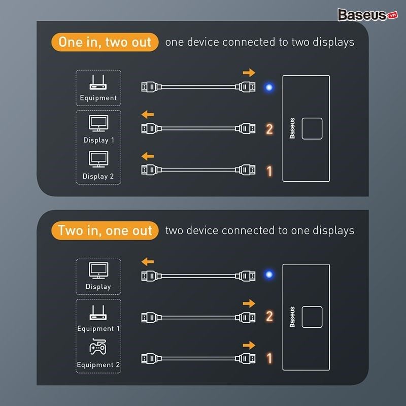 Thiết bị chia cổng HDMI 2 chiều Baseus Matrix HDMI Splitter (2 Devices to 1 Screen or 1 Device to 2 Screen, Support 4K30Hz/ 4k60Hz)