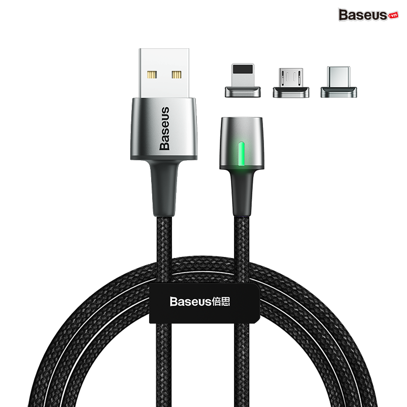 Bộ cáp từ 3 đầu Baseus Zinc Magnetic Series 2 Cable Kit(Lightning/ Type C/ Micro Magnetic Connetor + USB Cable)