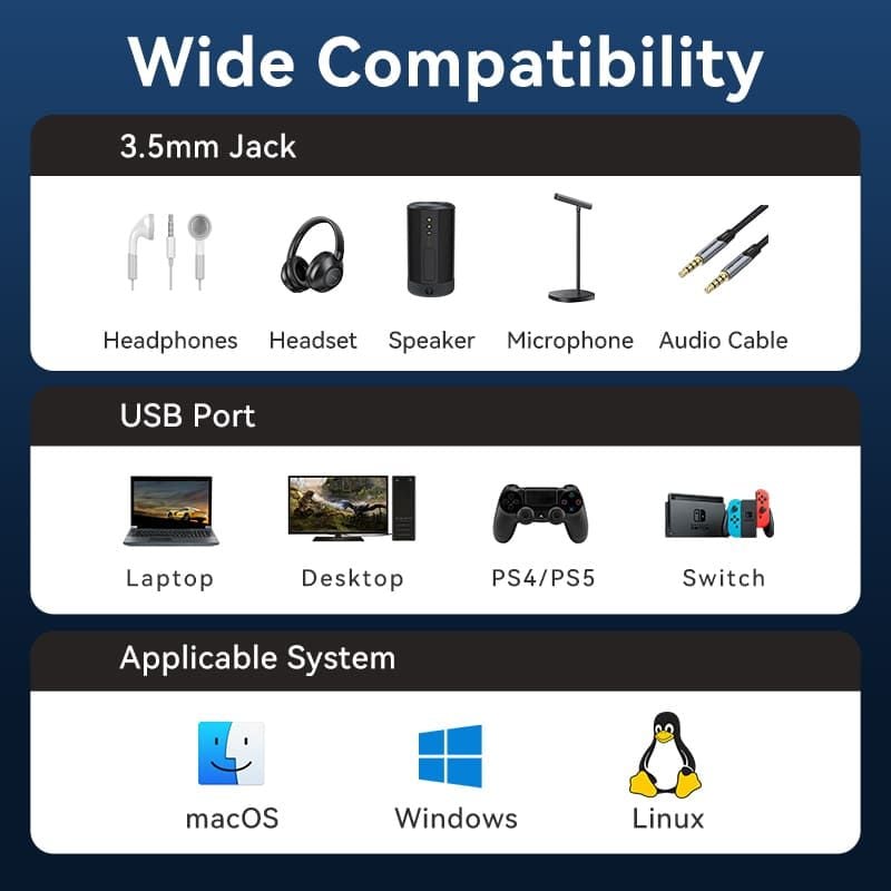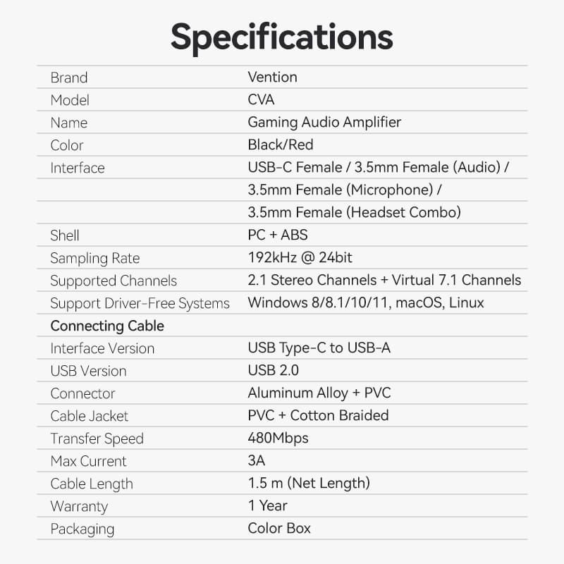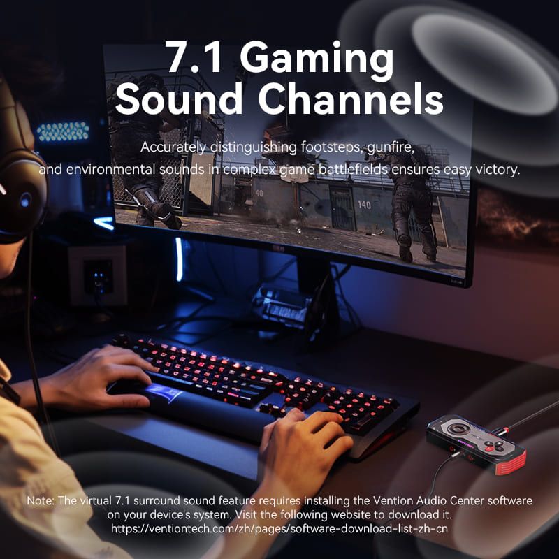 Bộ Khuếch Đại Âm Thanh Chơi Game VENTION CVA (192kHz@24bit, Virtual 7.1 Channel, Stereo 2.1 Channel, LED RGB)