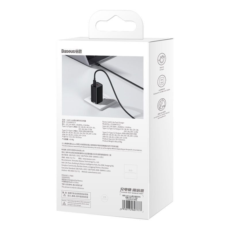 Bộ Sạc Nhanh Đa Năng Baseus GaN3 Lite Fast Charger 67W (Type C + USB Port, PD3.0/PPS/QC4.0/SCP/FCP Multi Quick Charge Protocol)