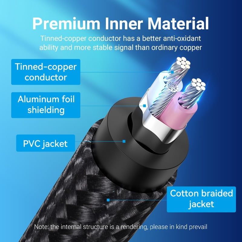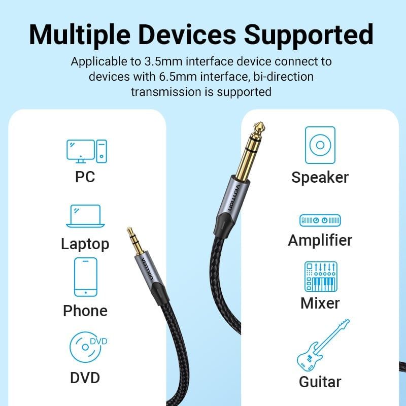 Cáp Chuyển Âm Thanh 3.5mm TRS to 6.35mm VENTION BAU (1m, Hi-Fi audio)