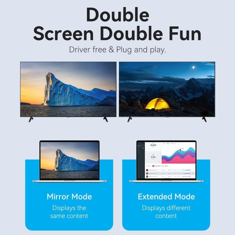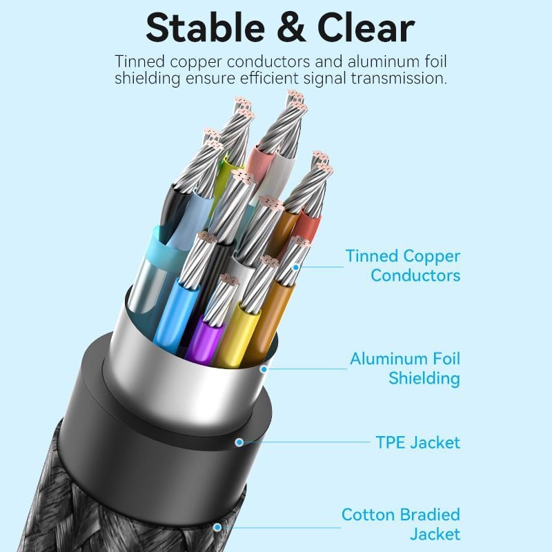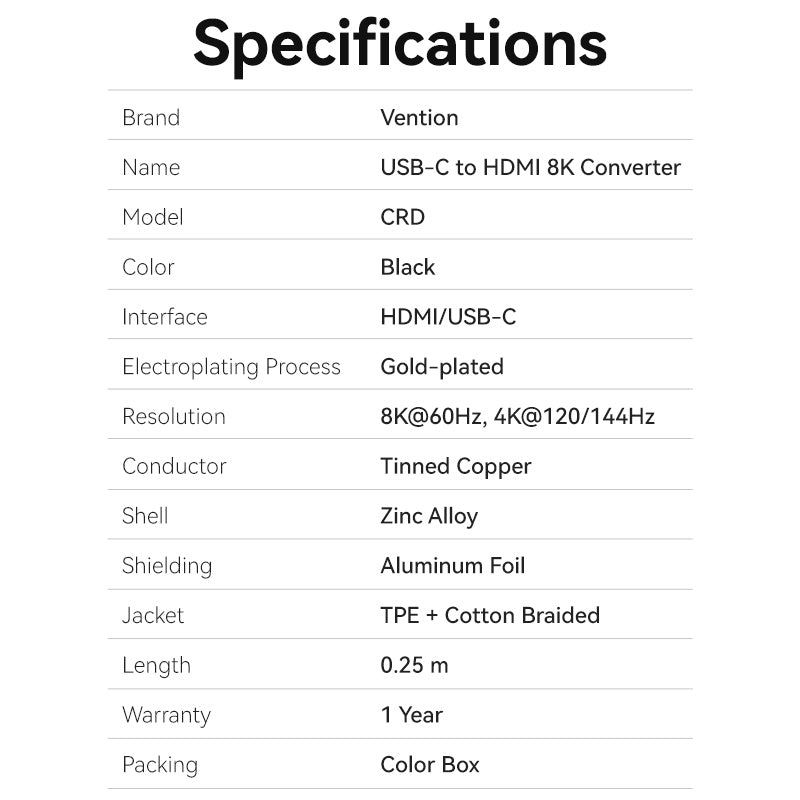 Cáp Chuyển Type-C sang HDMI2.1 VENTION CRD (0.25M, 8K@60Hz, 4K@144Hz/120Hz, 3D Support, Dynamic HDR, HDCP 2.3, 12-Bit Color Depth, eARC, QMS, VRR)
