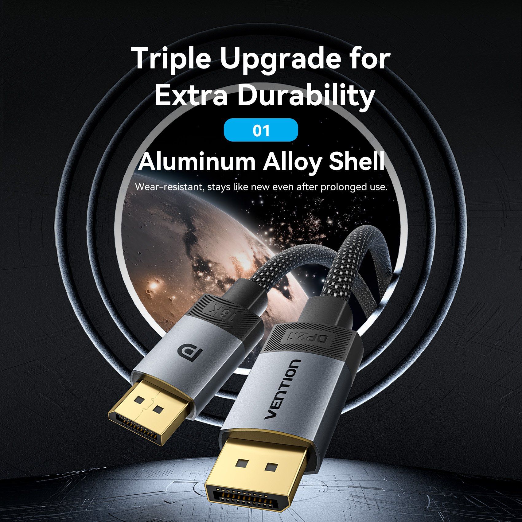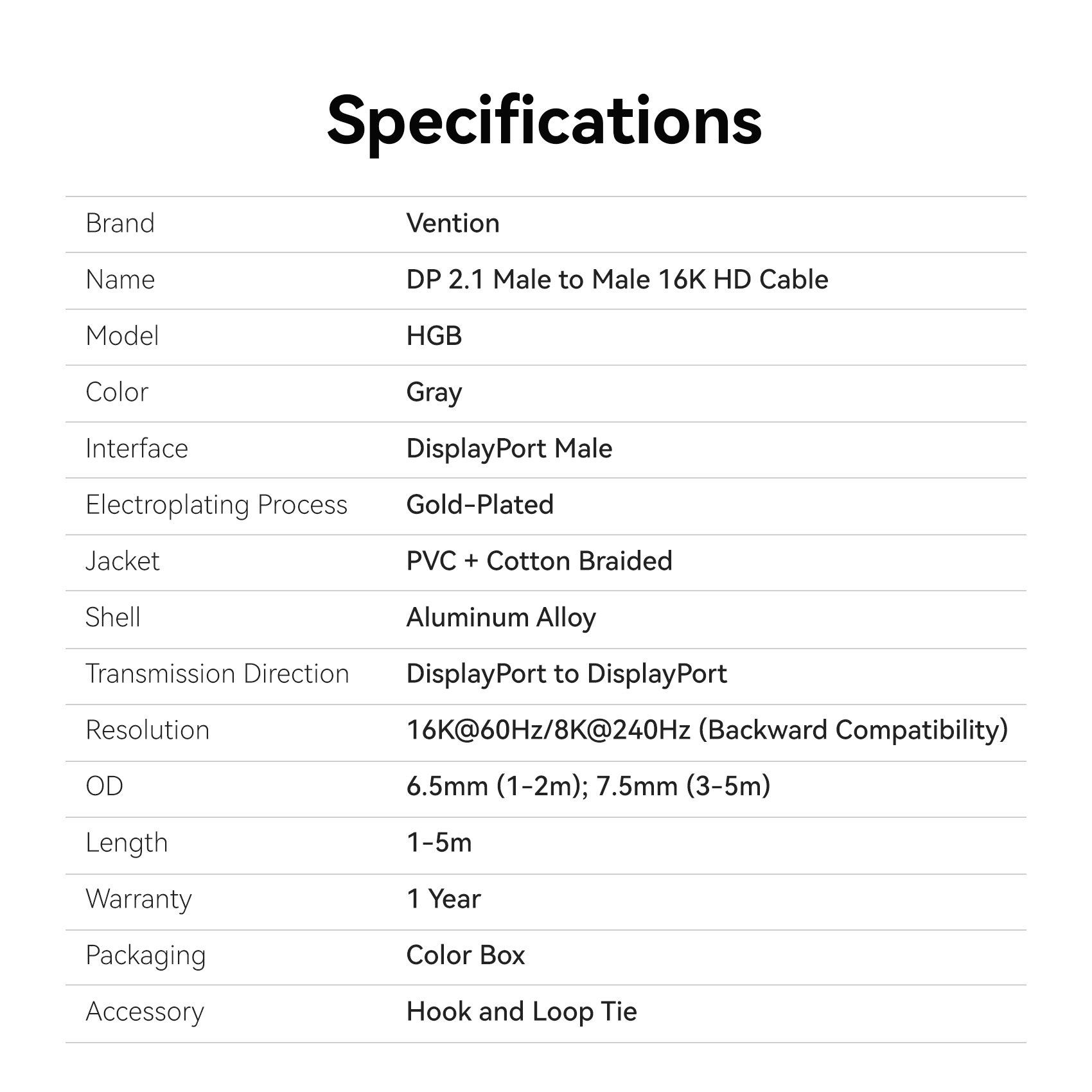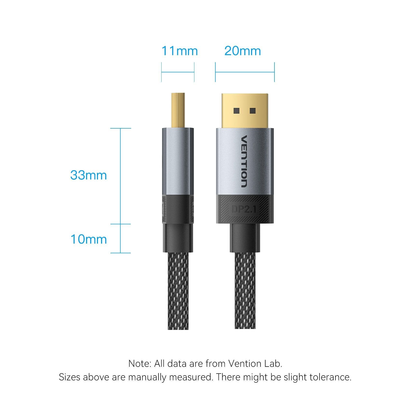 Cáp DisplayPort2.1 VENTION HGB 16K (16K@60Hz / 10K@60Hz / 8K@240Hz / 4K@360Hz / 2K@480Hz / 1080P@540Hz, HDR10+, HDCP 2.2, DSC 1.2a, 54Gbps, 3D Stereoscopic Imaging, FEC, NVIDIA G-Sync, AMD FreeSync Premium Pro, DSC, 32-bit audio)