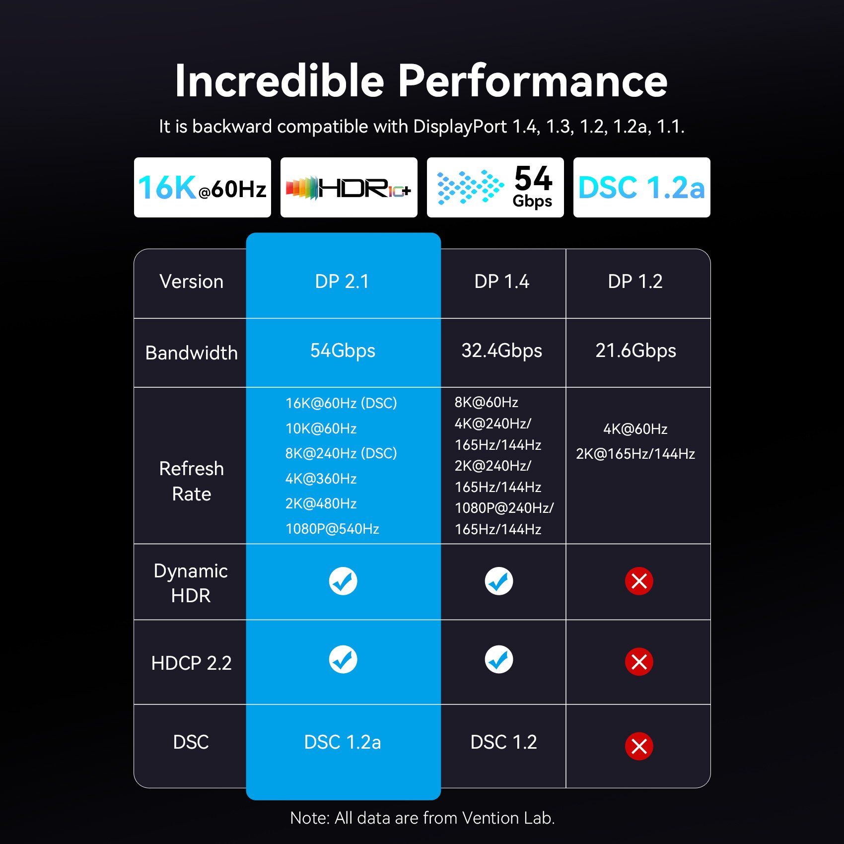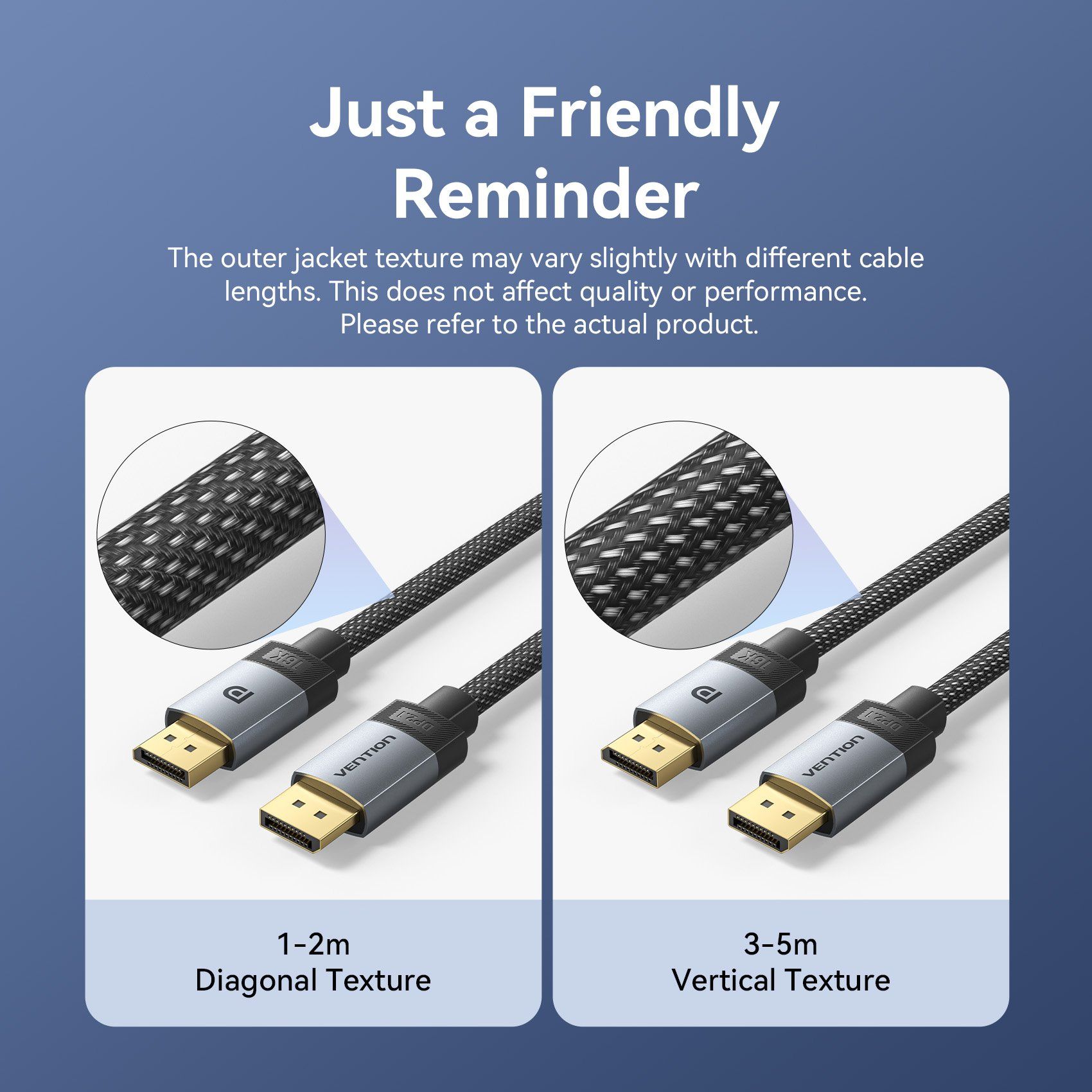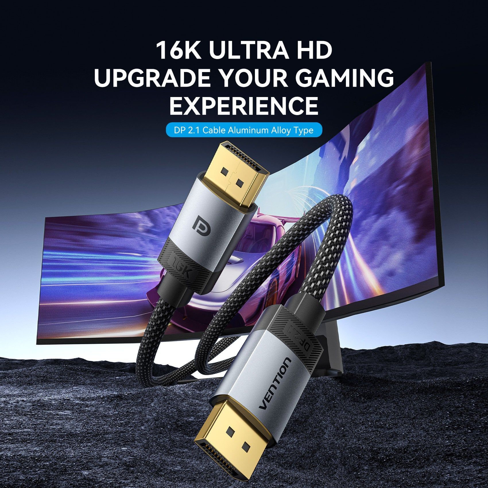 Cáp DisplayPort2.1 VENTION HGB 16K (16K@60Hz / 10K@60Hz / 8K@240Hz / 4K@360Hz / 2K@480Hz / 1080P@540Hz, HDR10+, HDCP 2.2, DSC 1.2a, 54Gbps, 3D Stereoscopic Imaging, FEC, NVIDIA G-Sync, AMD FreeSync Premium Pro, DSC, 32-bit audio)