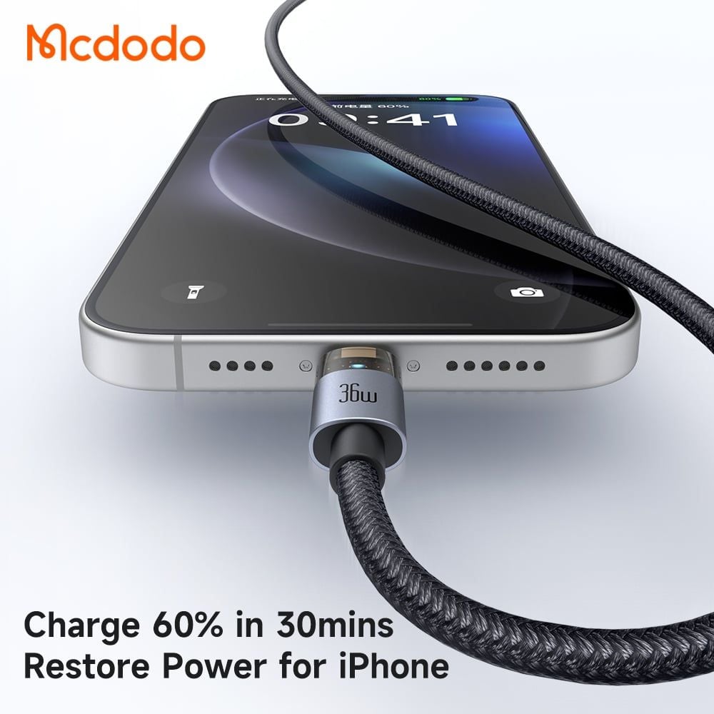 Cáp Sạc Nhanh C to Lightning MCDODO CA-694 36W (1.2m, Supports CarPlay, Dual-Sided Indicator, 480Mbps)