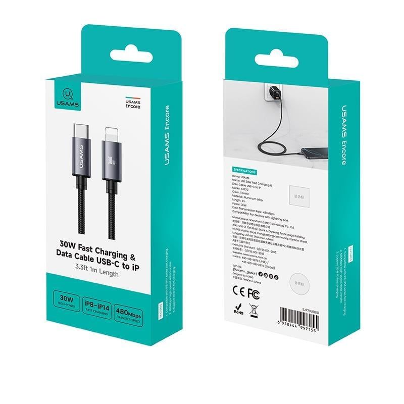Cáp Sạc Nhanh C to Lightning USAMS SJ770 U91 30W (1.2m, 480Mbps)