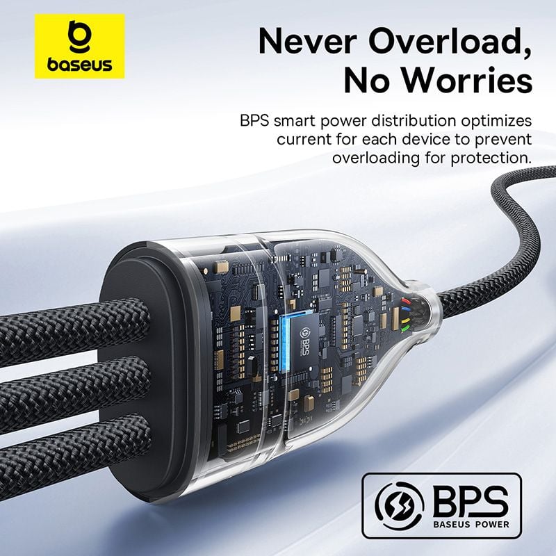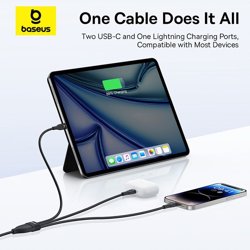 Cáp Sạc Nhanh Đa Năng 1 for 3 Baseus Flash Series 3 100W (Type-C to 2*Type-C+Lightning, 1.5m, 480Mbps)