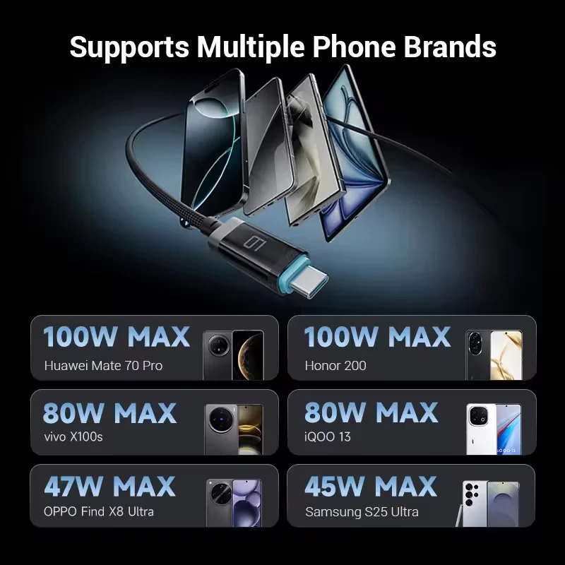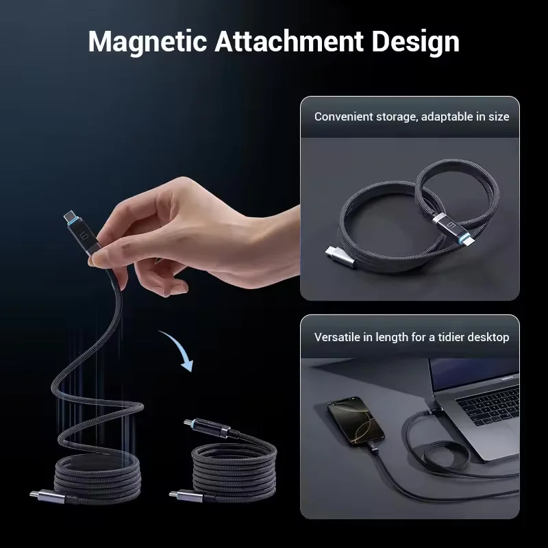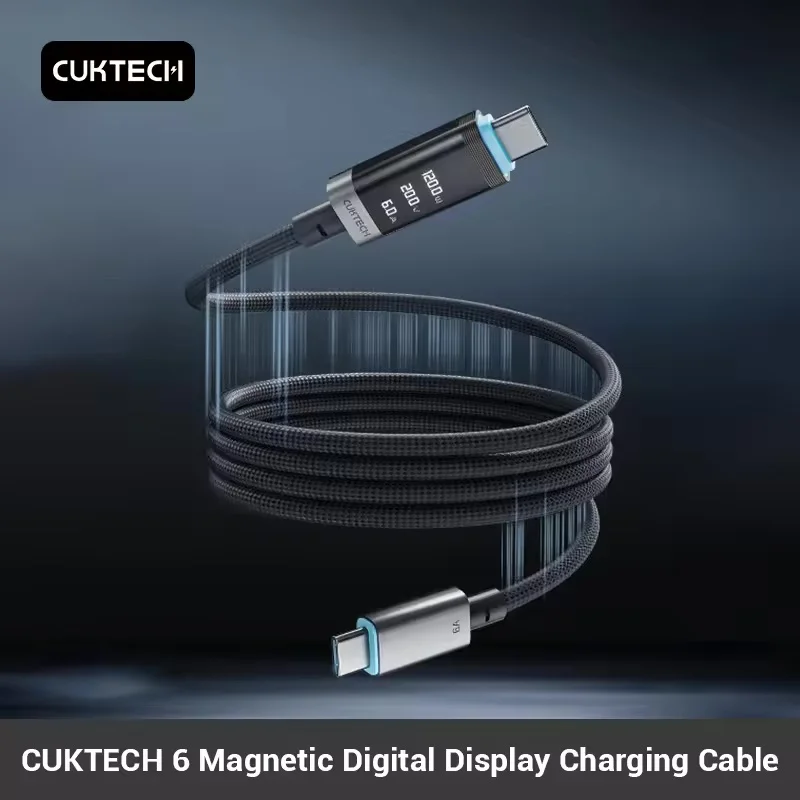 Cáp Sạc Nhanh Thu Gọn Từ Tính C to C CUKTECH 6 240W (OLED Display, 6A, PD3.1/Mi Turbro, Supports CarWith/CarPlay/HiCar, 1.5m)