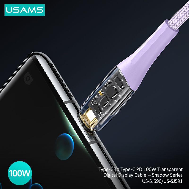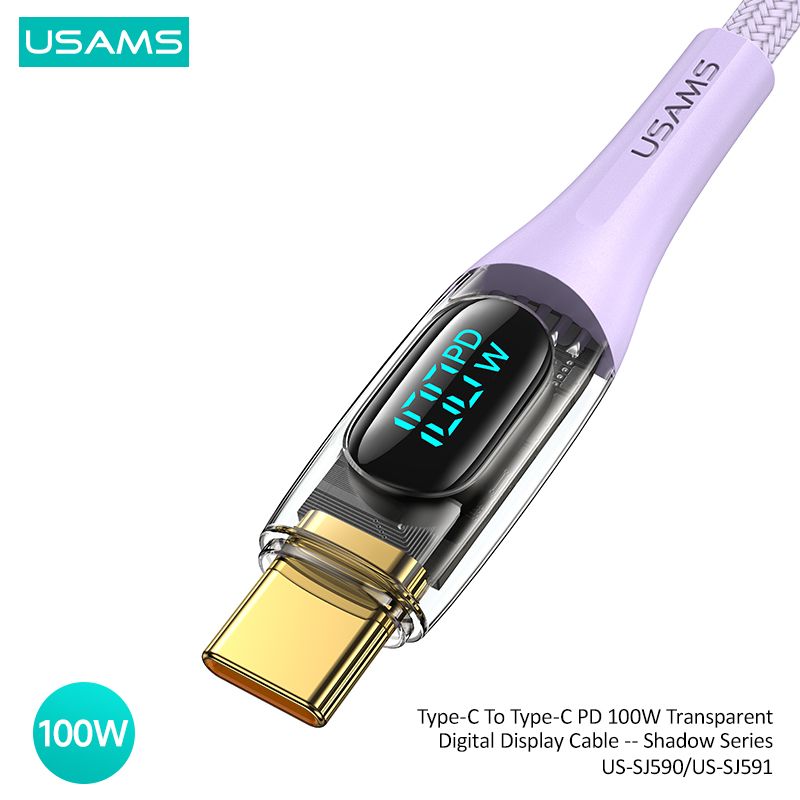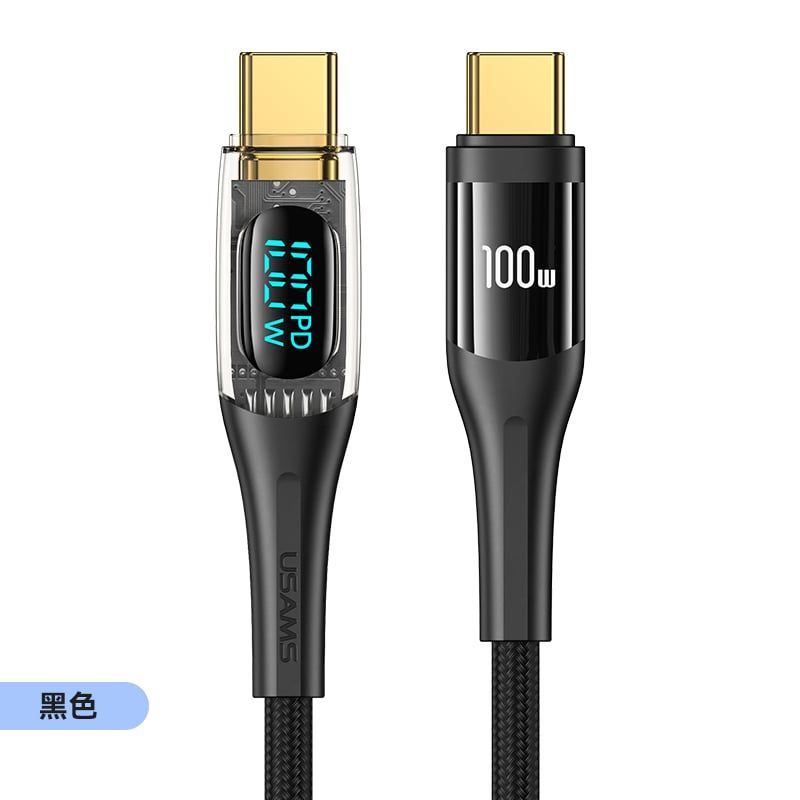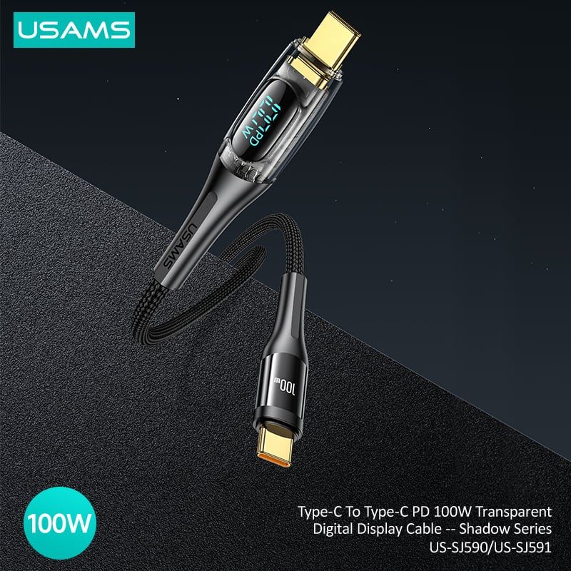 Cáp sạc nhanh USAMS SJ590/SJ591 Type-C To Type-C PD 100W Transparent Digital Display Shadow Series