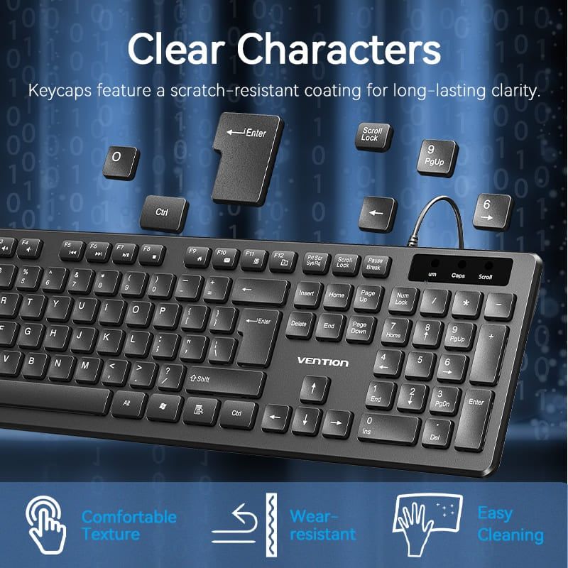 Combo Bàn Phím Kèm Chuột Có Dây VENTION KTC (USB Wired, Full-Sized Keyboard, Ergonomic Design, 1200DPI)