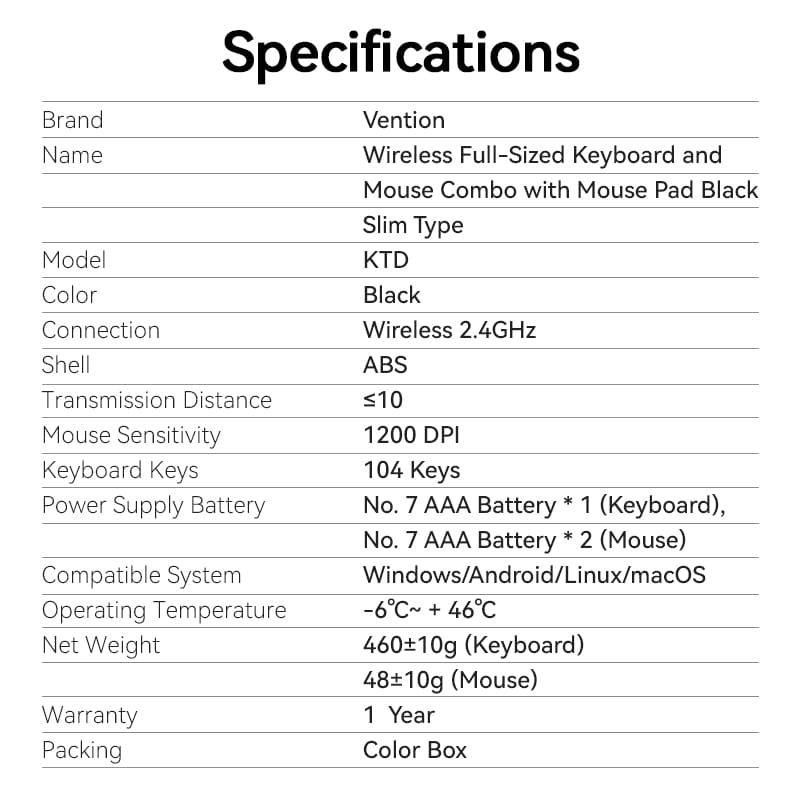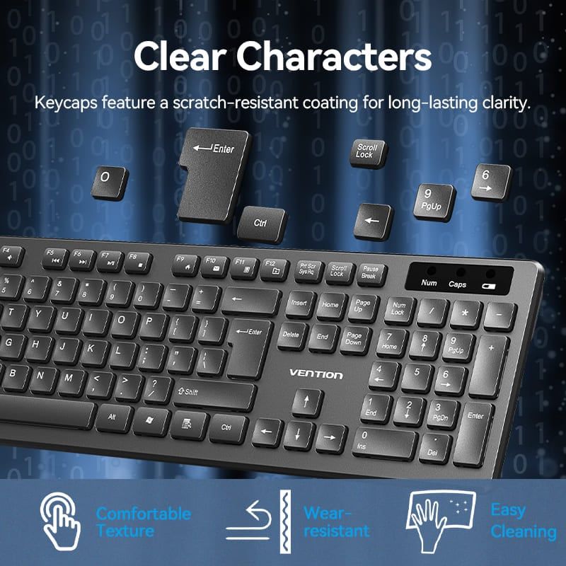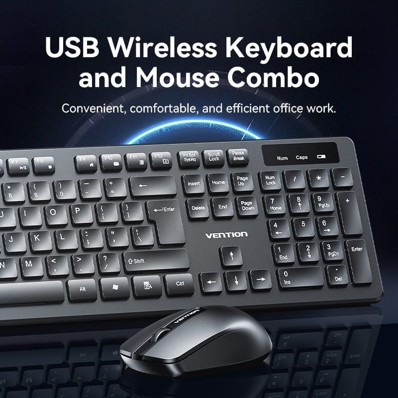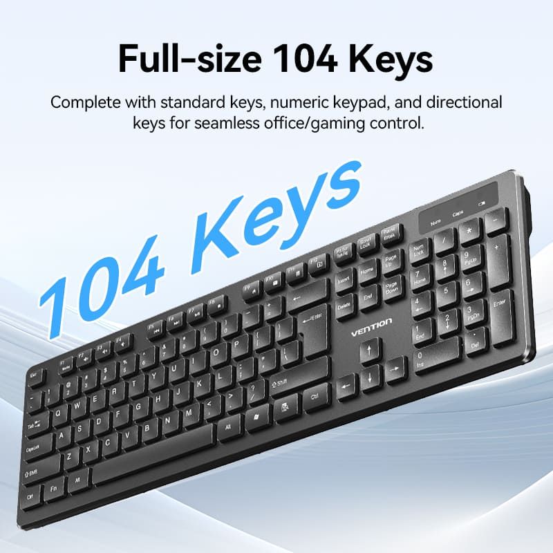 Combo Chuột Kèm Bàn Phím Không Dây VENTION KTD (Full-Sized Keyboard, 2.4GHz, 1200DPI, 3 Buttons Mouse, ≤10m, AAA Battery)