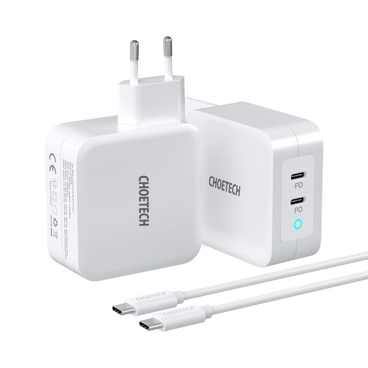 Củ sạc nhanh 2 cổng Type C Choetech PD6008 GaN Charger PD100W (Dual Type C Quick Charger)