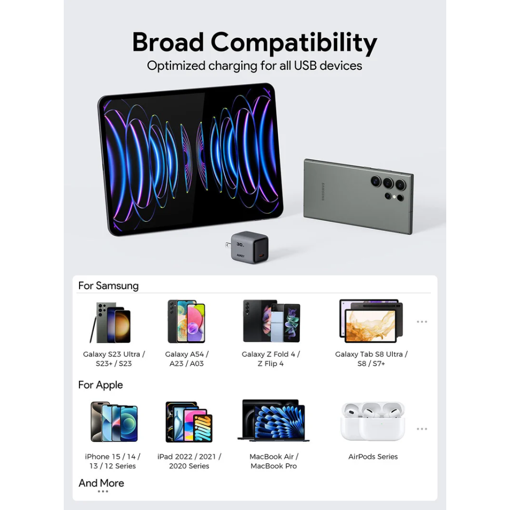 Củ Sạc Nhanh AUKEY PA-C1 Comet 30W (GaN Technology, 1*Type-C Port)