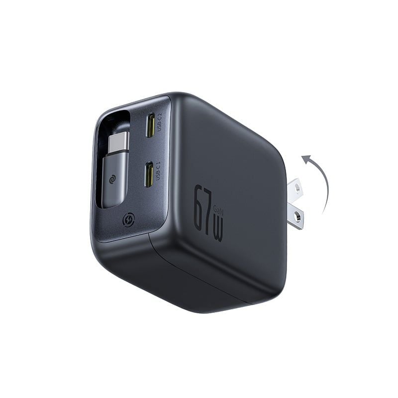 Củ Sạc Nhanh Baseus EnerCore CJ11 67W (2*Type-C port, With 82cm Type-C Built-in Cable, AI-Powered Real-Time Monitoring)