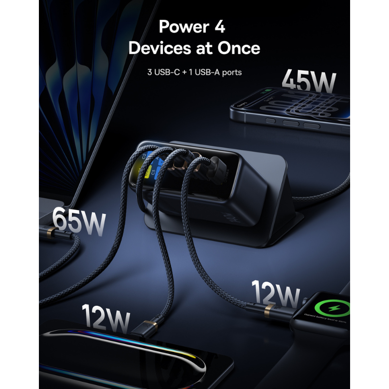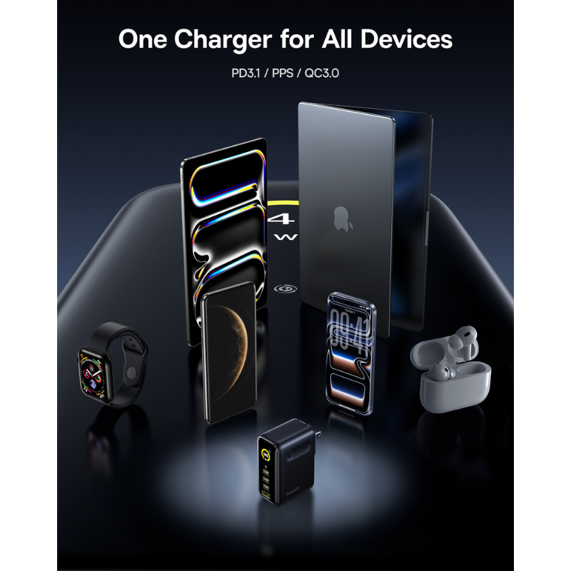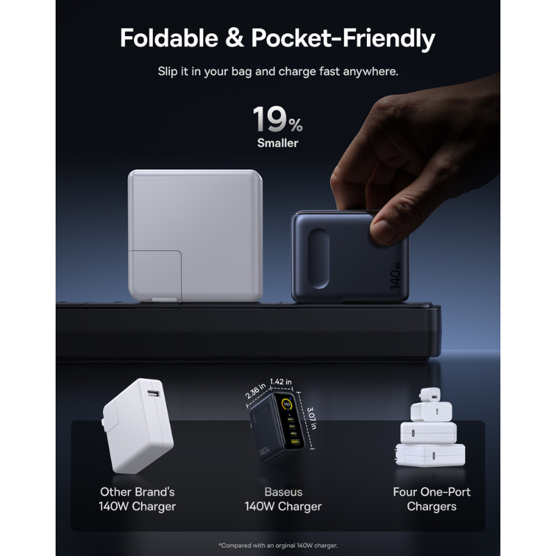Củ Sạc Nhanh Baseus PicoGo AH11 140W (3*Type-C + 1*USB-A port, Digital Display, Includes Dura Fast Charging Cable C to C 240W 1.5m)