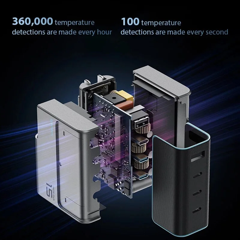 Heat Dissipation: GaN cooling system + optimized circuit design, prevents overheating during prolonged charging