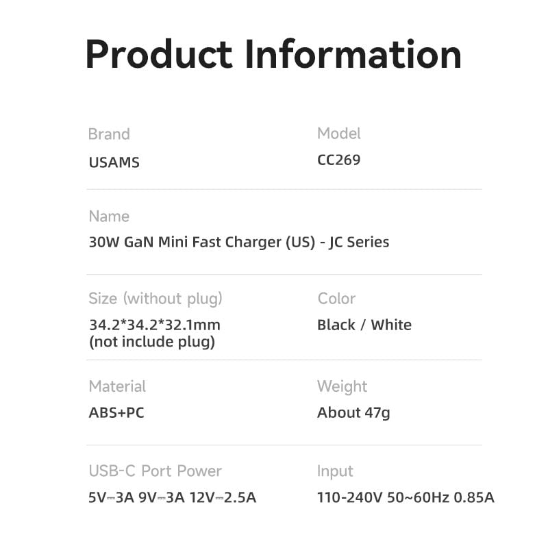 Củ Sạc Nhanh USAMS CC269 30W (GaN Charger)