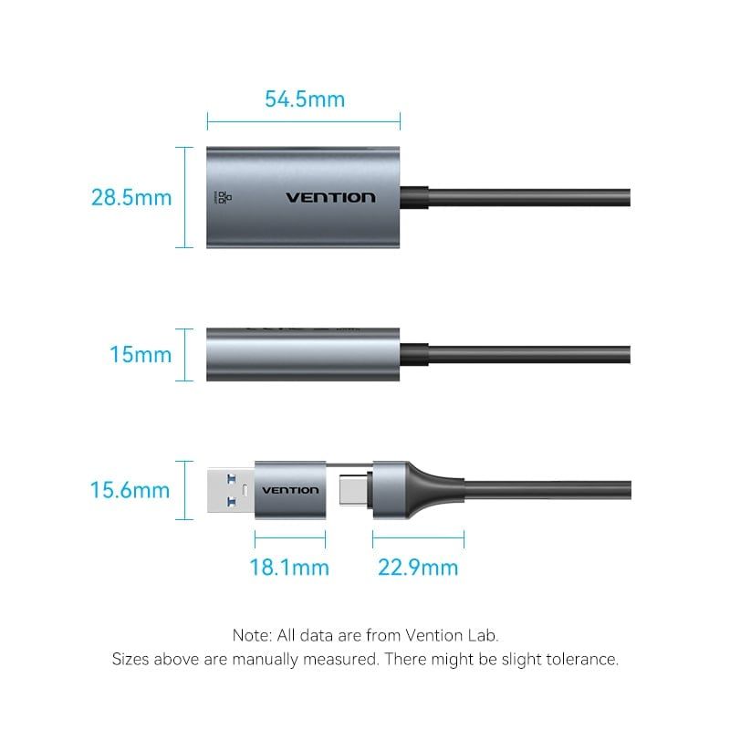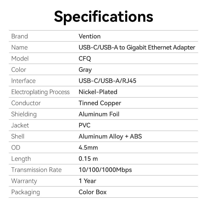 Đầu Chuyển Mạng LAN Type-C/USB-A to Gigabit Ethernet VENTION CFQ (1Gbps, 0.15m)