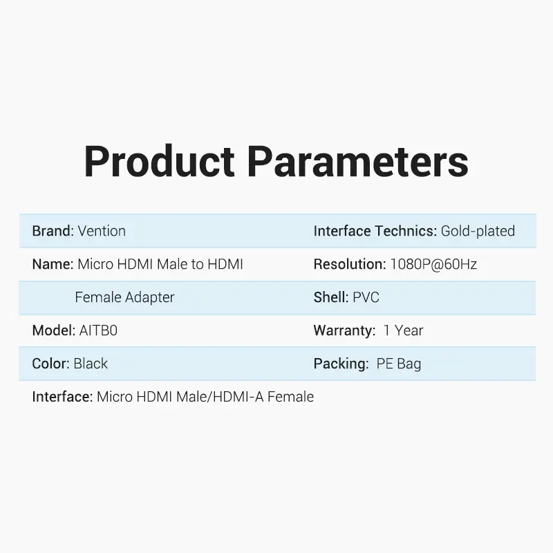 Đầu Chuyển Micro HDMI to HDMI 1080p VENTION AIT (1080p@60Hz, Male to Female)
