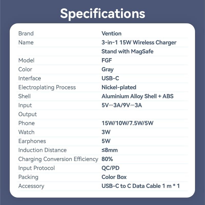 Đế Sạc Đứng Không Dây 3-in-1 15W VENTION FGF (with MagSafe)