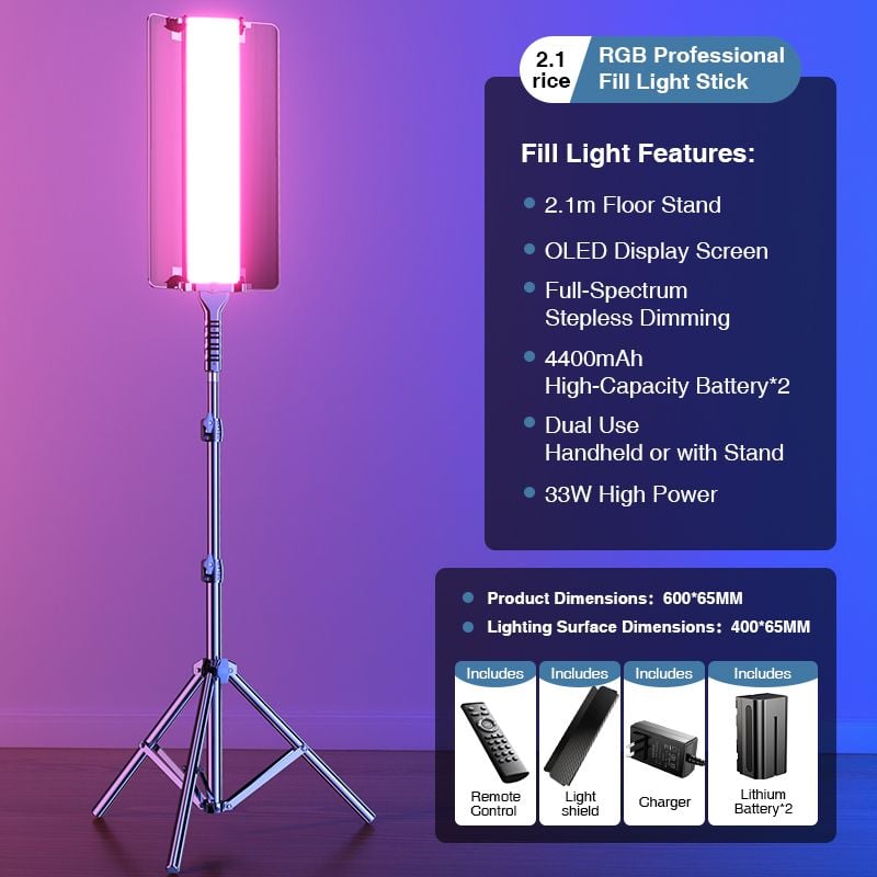 Đèn Cầm Tay RTAKO AR-GTB-SL60S 33W Digital RGB (18W + 18W, 2700-7500K, 39 Chế Độ Hiệu Ứng Đặc Biệt)