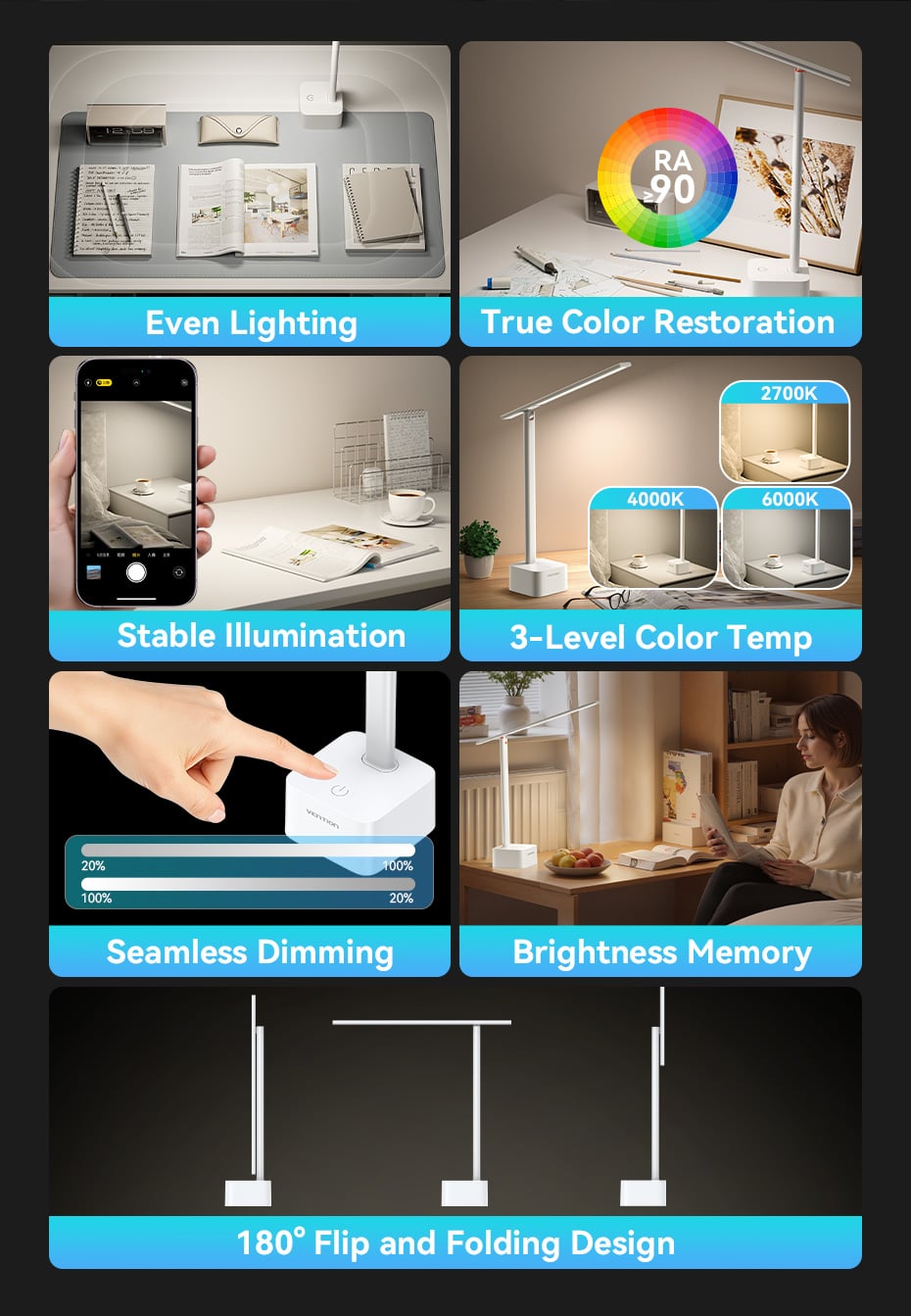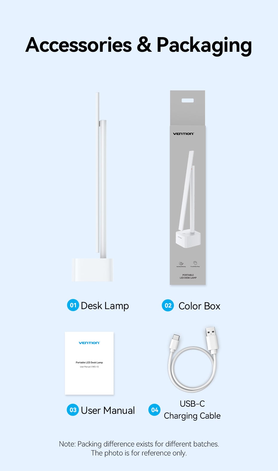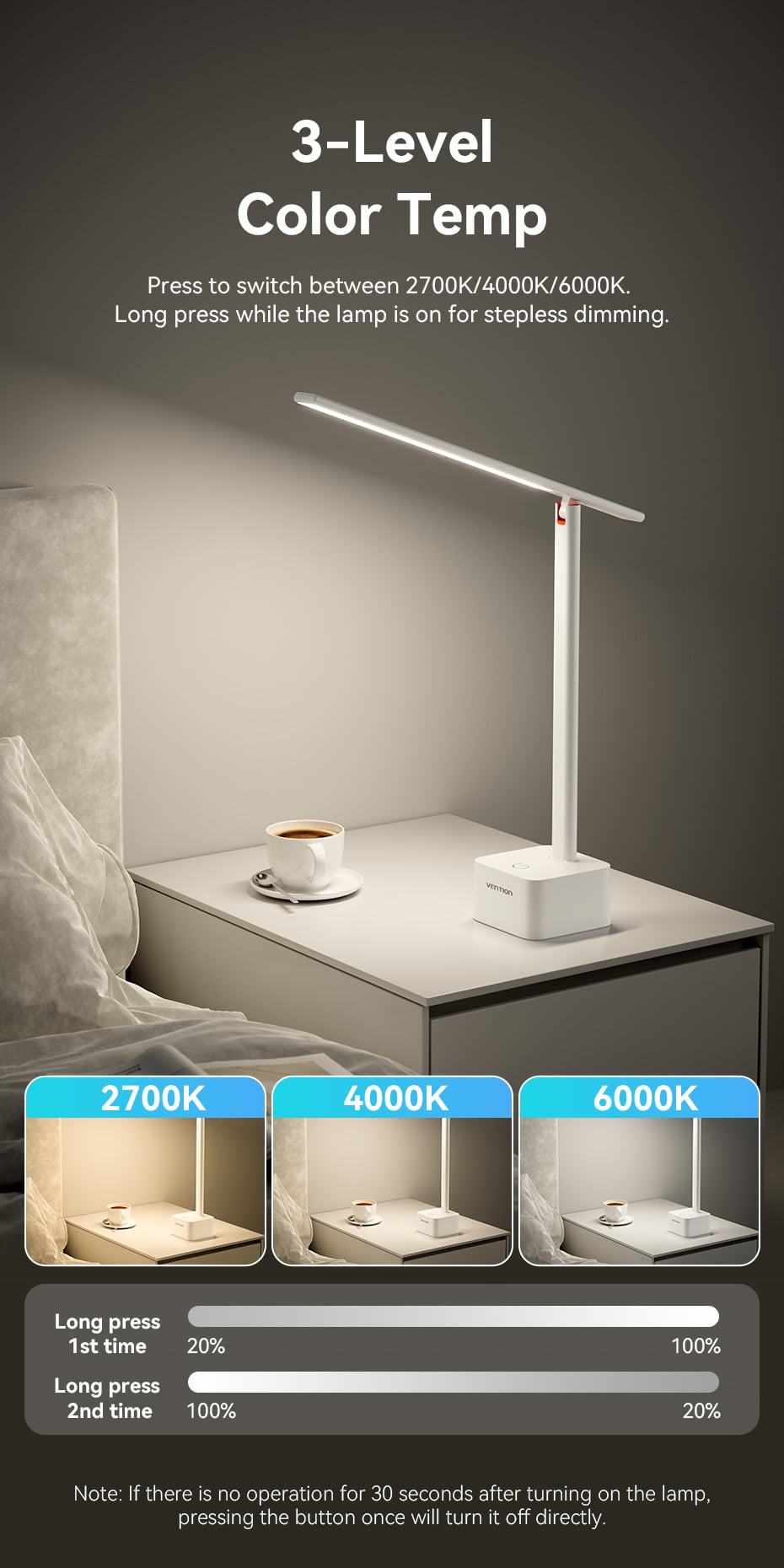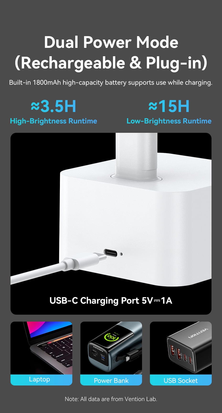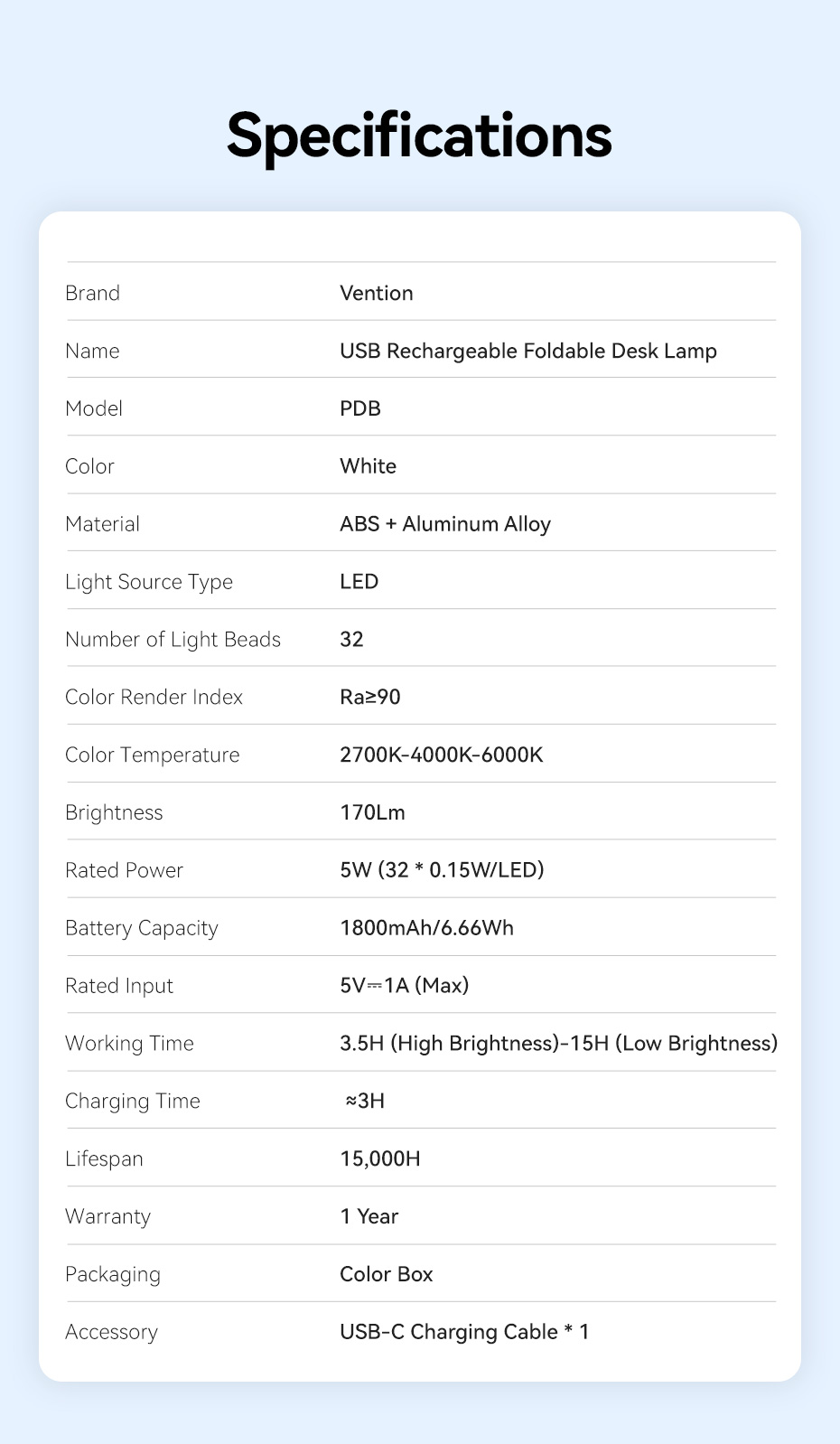 Đèn Để Bàn VENTION PDB 5W (CRI Ra≥90, 2700K-4000K-6000K, 1800mAh, Up to 15H)