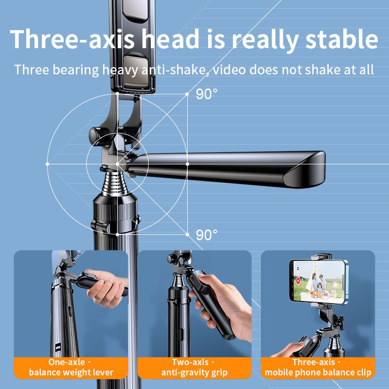 Gậy chụp ảnh tích hợp Tripod RTAKO Q052 1.8m Ultra-Wide Angle Selfie Stick (Góc rộng, 4 trục chống rung, kèm Remote Bluetooth chụp ảnh)