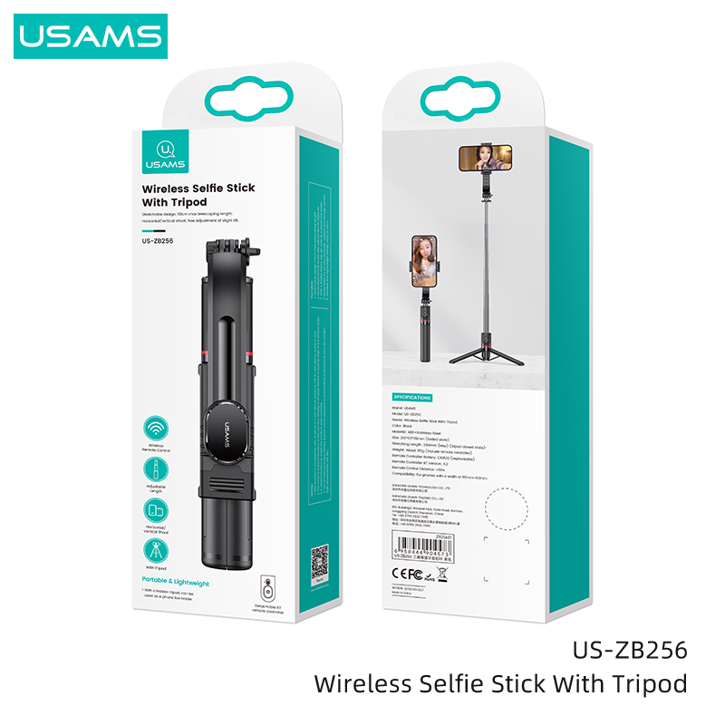 Gậy Selfie Tripod có Remote điều khiển USAMS ZB256 Wireless Selfie Stick With Tripod (Max Length: 1.13m)