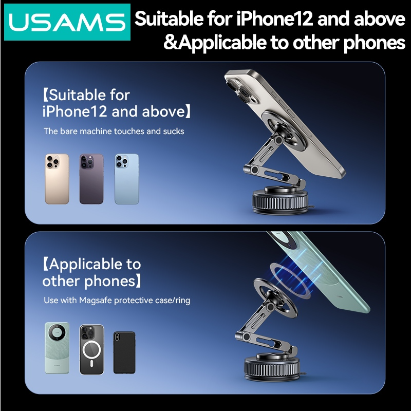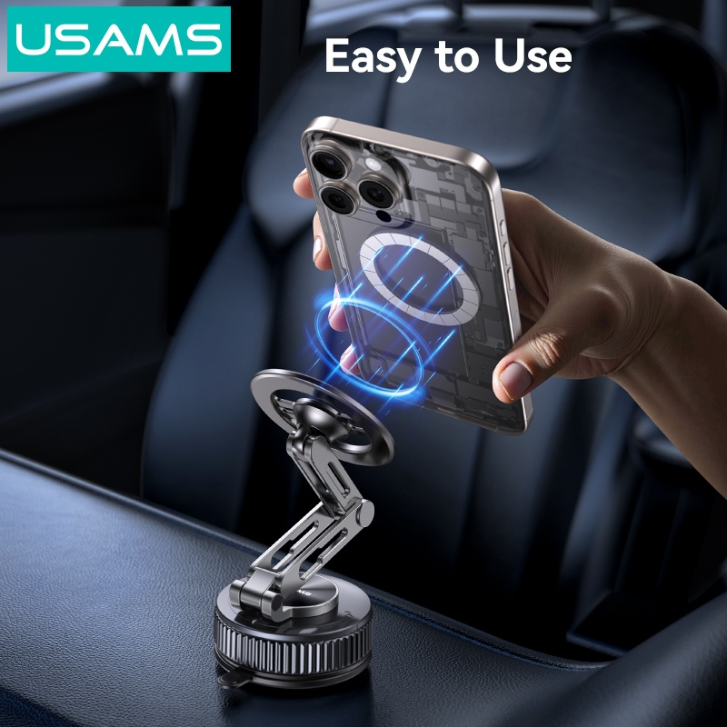 Giá Đỡ Điện Thoại Hút Chân Không Ô Tô Từ Tính + Để Bàn USAMS ZJ087 (360° Rotation, 360° Foldable, 3-Axis folding, N52 Strong magnetic adsorption)