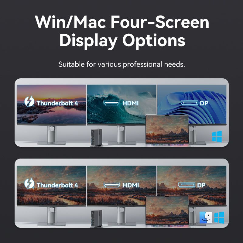 HUB Chuyển Đa Năng 14-in-1 VENTION TPF (Type-C to 1*Thunderbolt 4, 1*DisplayPort 8K@30Hz, 1*HDMI 8K@30Hz, 1*Type-C3.2 Gen2, 2*USB 3.2 Gen2, 1*USB 3.0, 2*USB2.0, 1*RJ45 GbE, 1*SD/TF, 1*3.5mm TRRS, 1*DC 5.5mm, EU Plug)