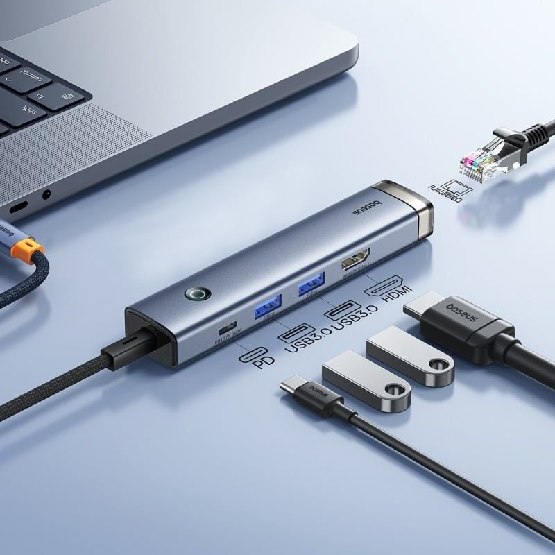 Hub Chuyển Đa Năng Baseus UltraJoy Series 5-Port HUB AIR Space (Type-C to HDMI4K@60Hz*1+USB3.0*2+PD*1+RJ45*1)
