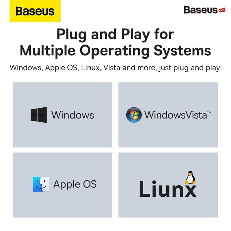 Hub Mở Rộng Kết Nối Baseus Lite Series USB/Type C to USB 3.0 (3 port USB3.0/5Gbps High speed/Docking Station)