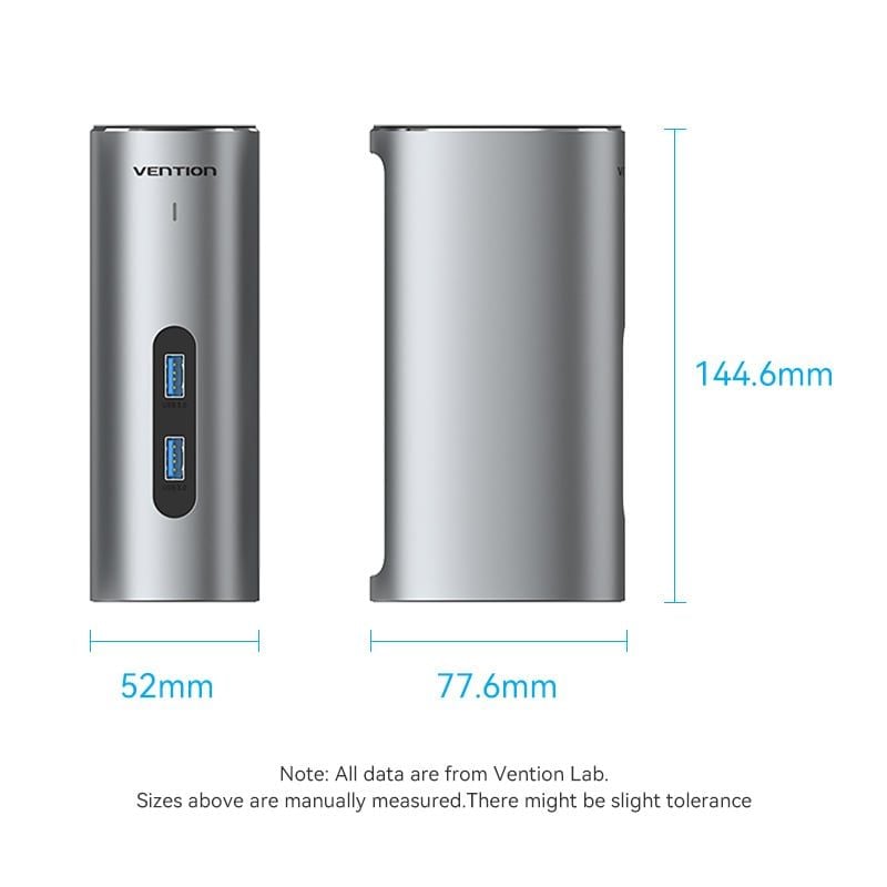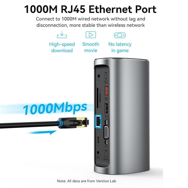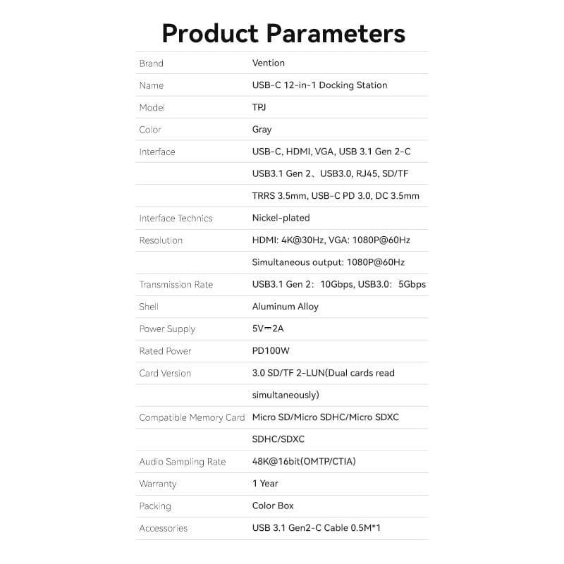 Hub Mở Rộng Kết Nối Đa Năng 12-in-1 VENTION TPJ (Type-C to HDMI/VGA/USB3.1Gen 2/Type C 3.1Gen2/USB3.0*2/RJ45/SD/TF/3.5mm/PD/DC Docking Station EU)