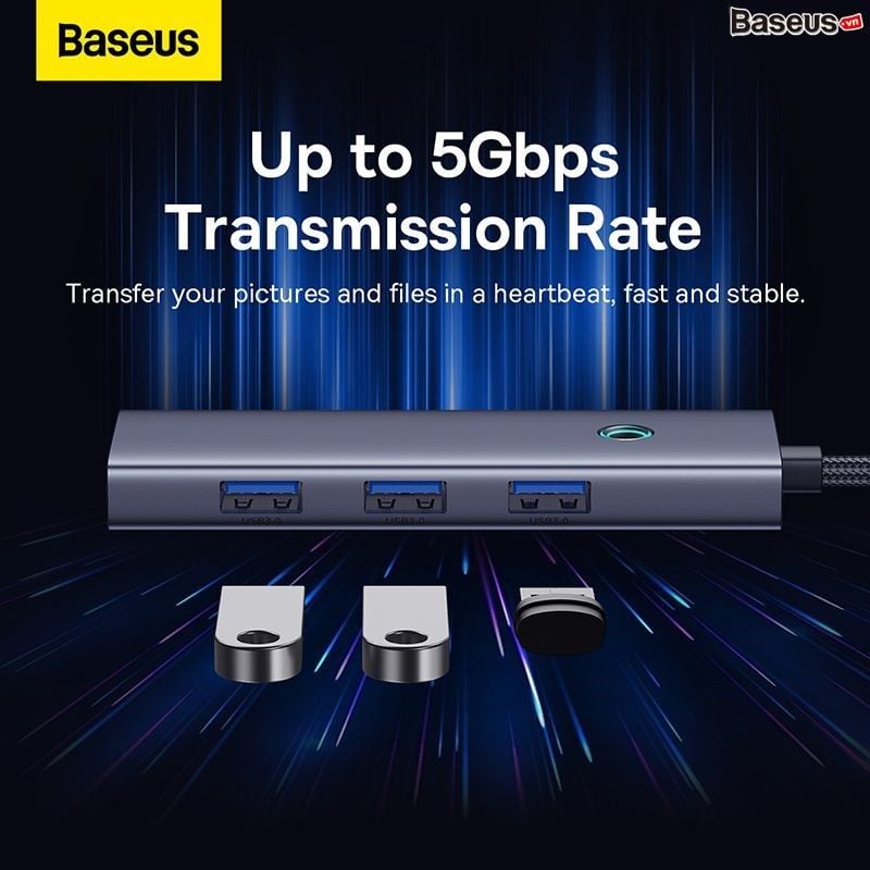 Hub Mở Rộng Kết Nối Đa Năng Baseus Flite Series HUB Docking Station Cho Macbook Laptop Smartphone Stable (Type-C to USB3.0 RJ45 SD/TF HDMI 4K/60Hz PD 100W)