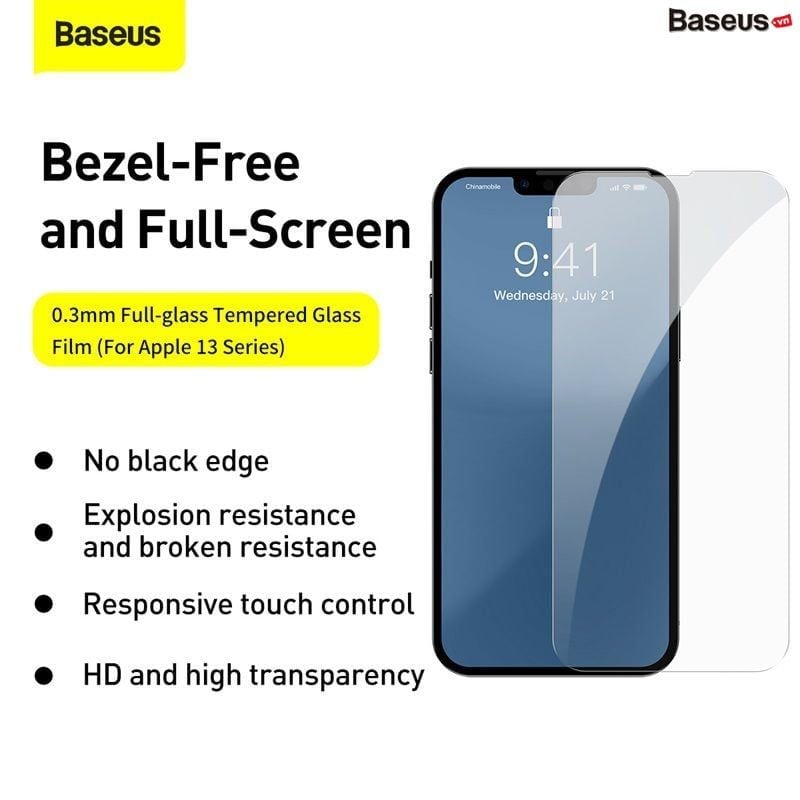 Kính cường lực 6 lớp chống trầy, siêu bền Baseus 0.3mm Full-glass Tempered Glass Film cho IPhone 13