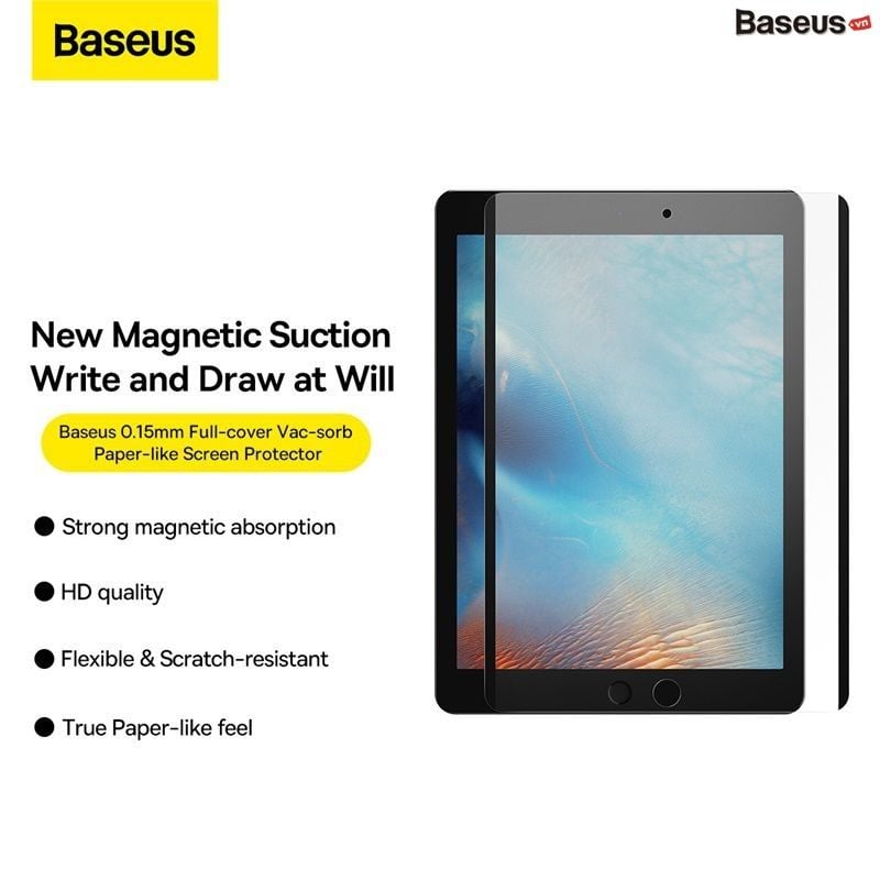Miếng Dán Từ Tính Chống Trầy Baseus 0.15mm Full-cover Vac-sorb Paper-like Screen Protector cho IPad (Ipad Mini/Pro/air)