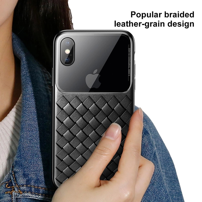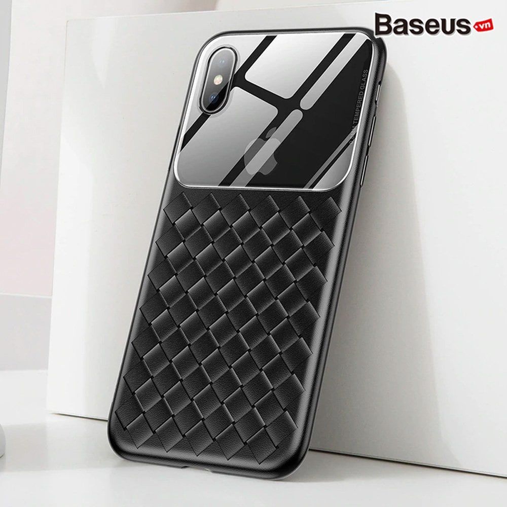 Ốp lưng Silicone - Kính cường lực Baseus Glass Weaving Case cho iPhone XS / XR / XS Max (Tempered Glass + Silicone)