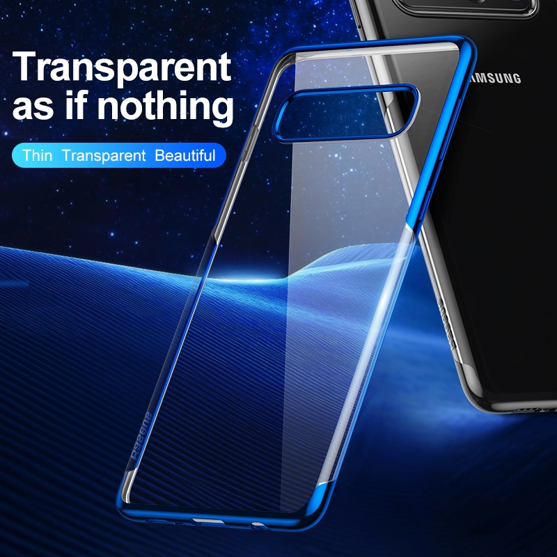 Ốp lưng Silicone dẽo trong suốt viền si Crome màu Baseus Shining Case cho Samsung Galaxy S10 / S10 Plus ( Soft TPU Silicone)