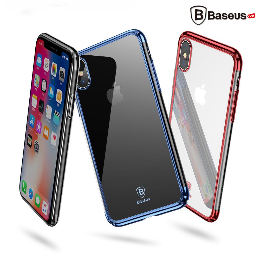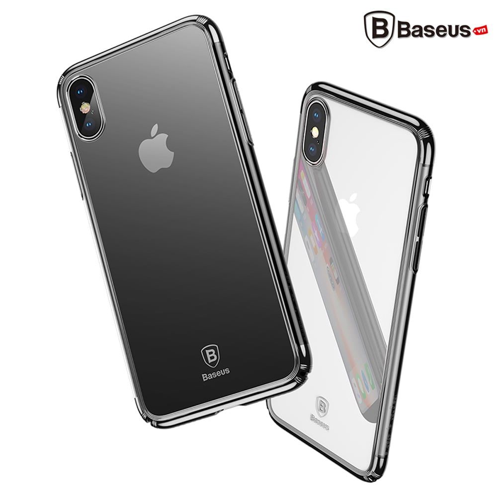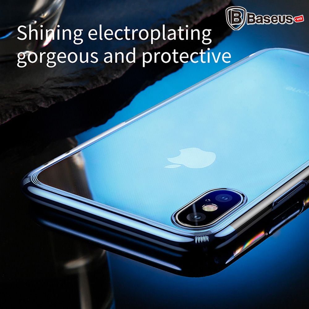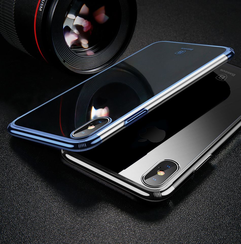 Ốp lưng trong suốt chống sốc viền si Crome màu Baseus Minju Case LV227 cho iPhone X ( Luxury Plating Hard Plastic PC Phone Case)