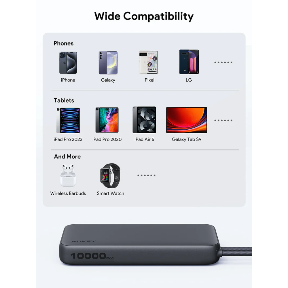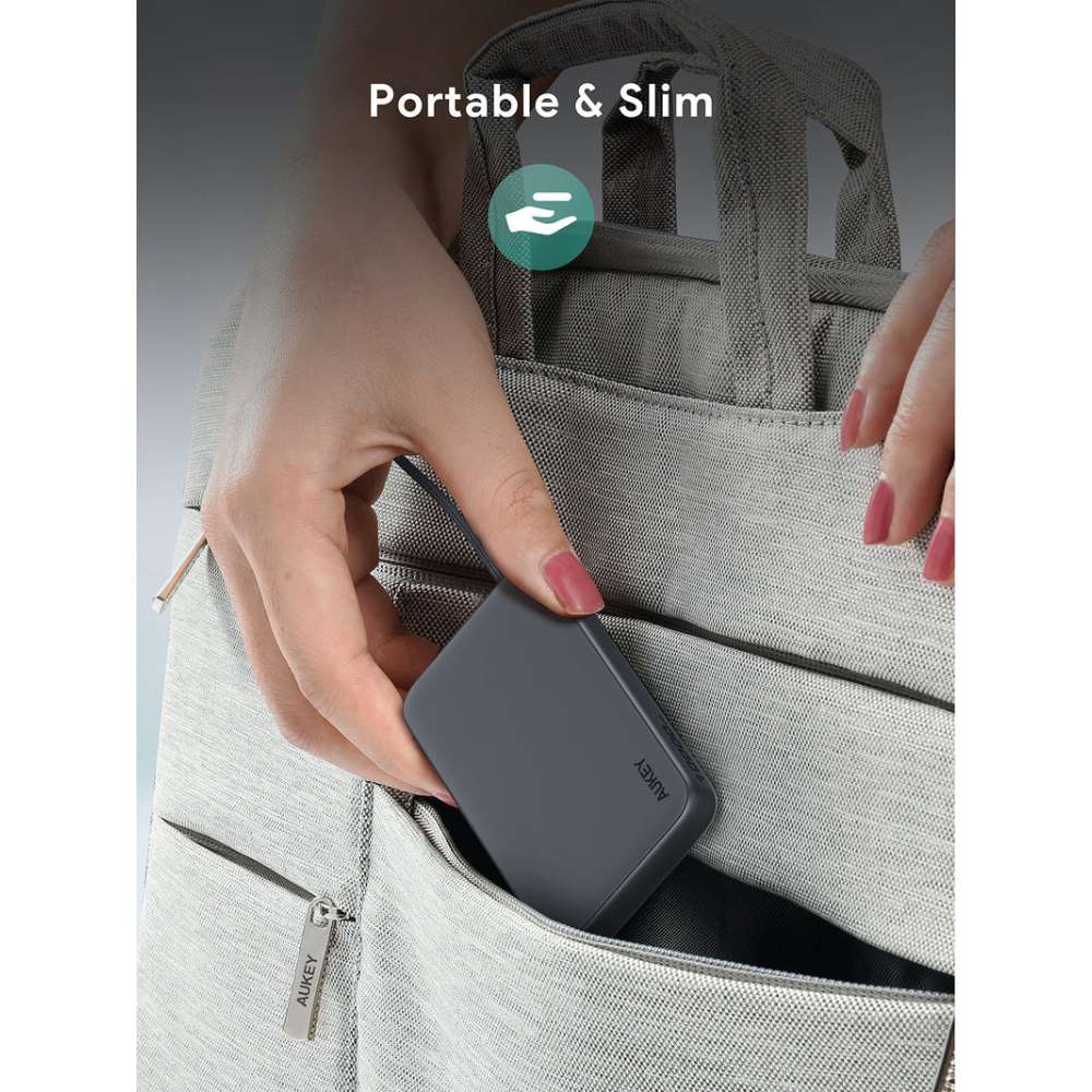 Pin Dự Phòng AUKEY Spark Sling PB-Y53 10000mAh 15W (with Built-in Type-C Cable, 1*Type-C + 1*USB-A port)