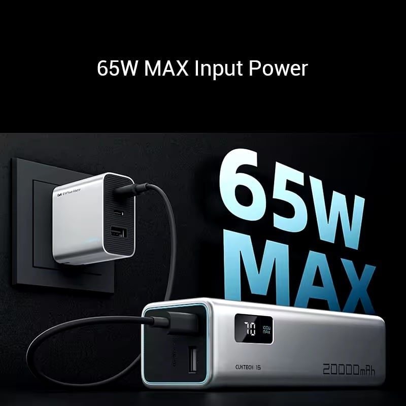 Pin Dự Phòng CUKTECH 15 SE 20000mAh 100W (2*Type-C + 1*USB-A, Digital Display, Airline Safe)