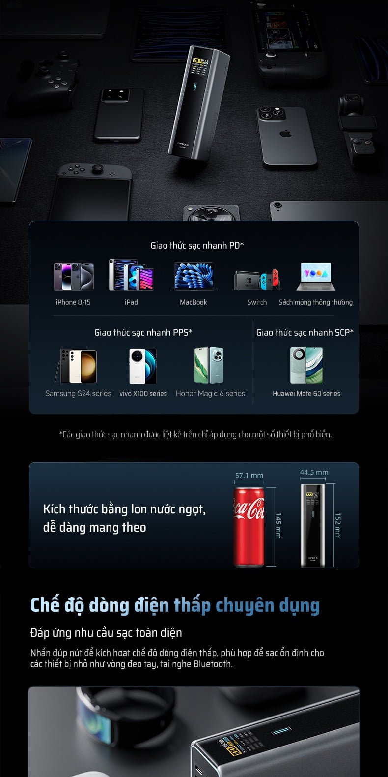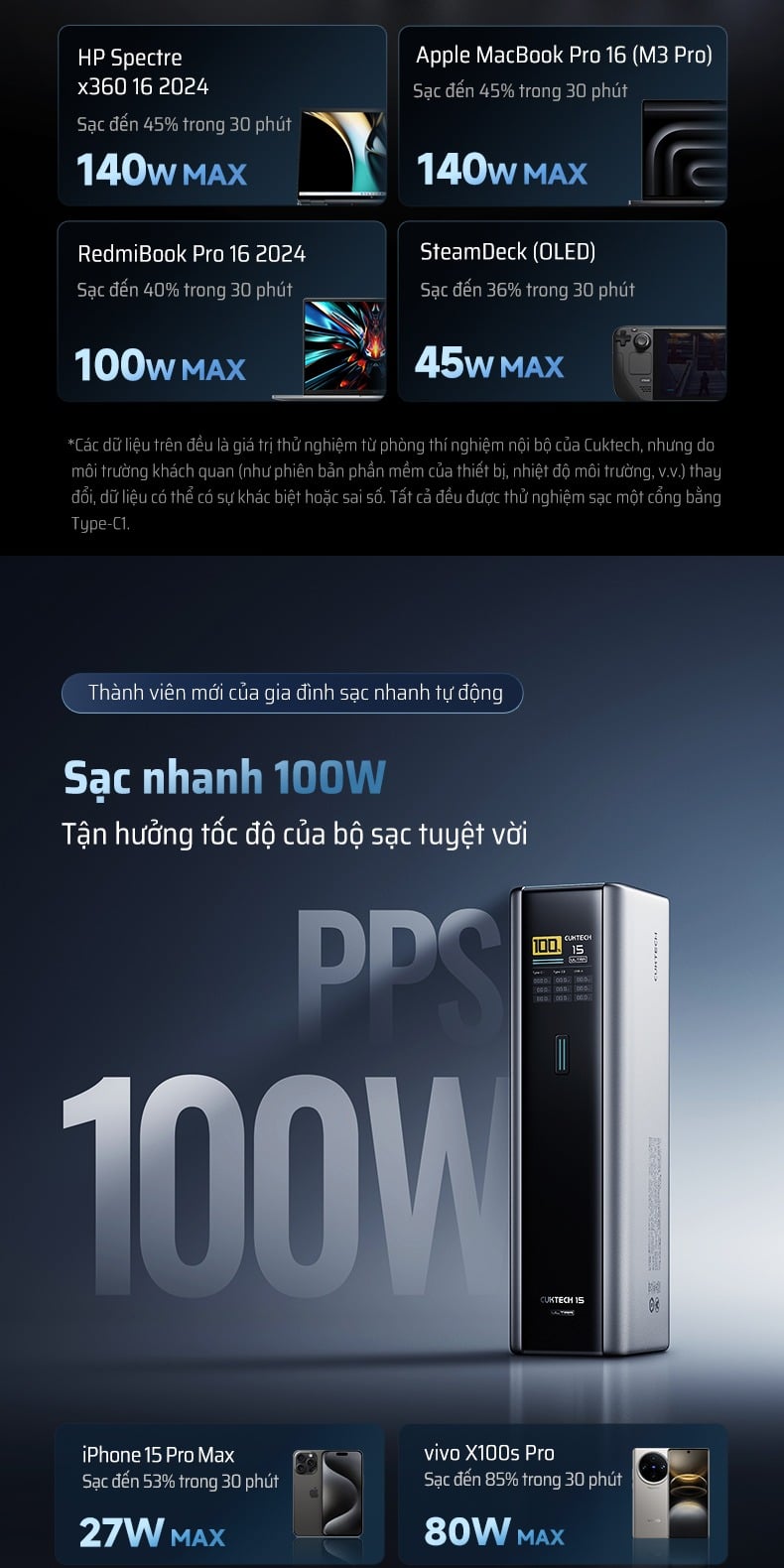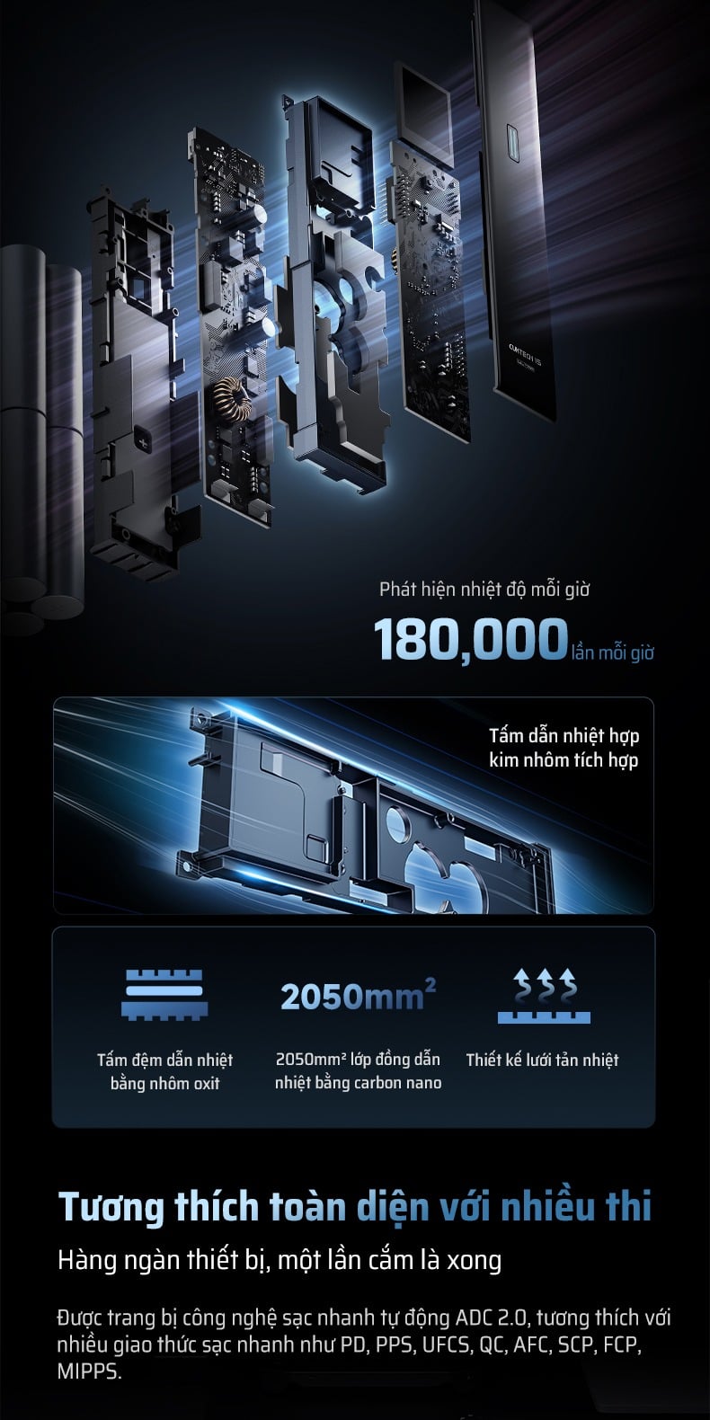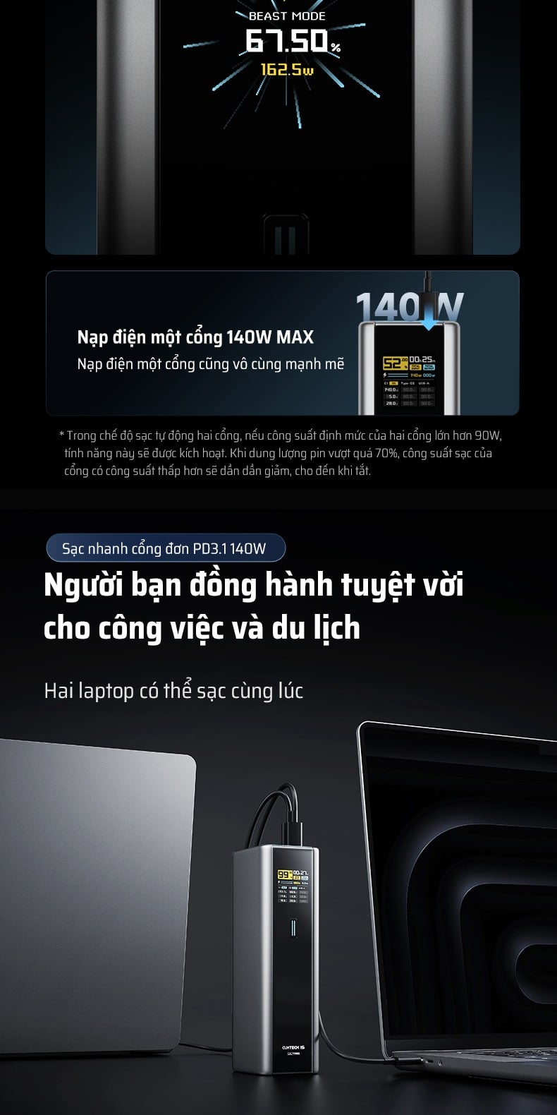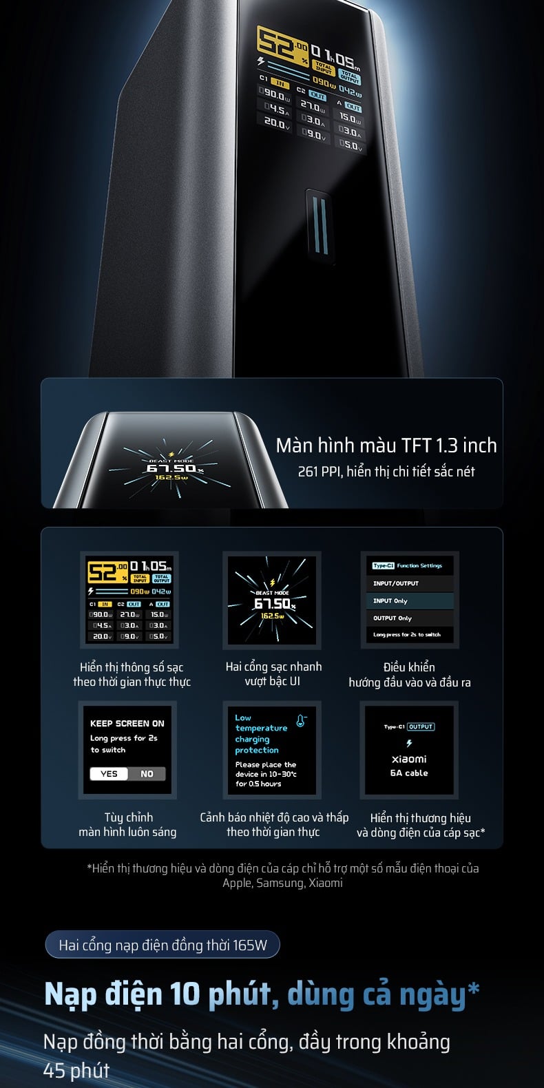 Pin Dự Phòng CUKTECH 15 Ultra 20000mAh 210W (2*Type-C + 1*USB-A, Airline Safe, 1.3" TFT Display, PD3.1, Dual input 165W Max)