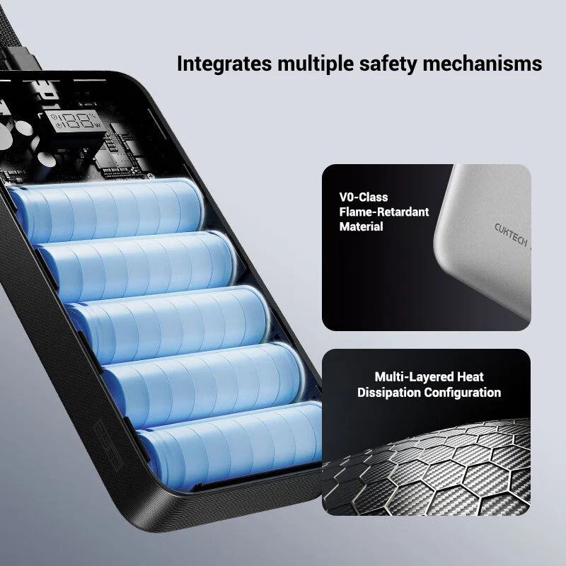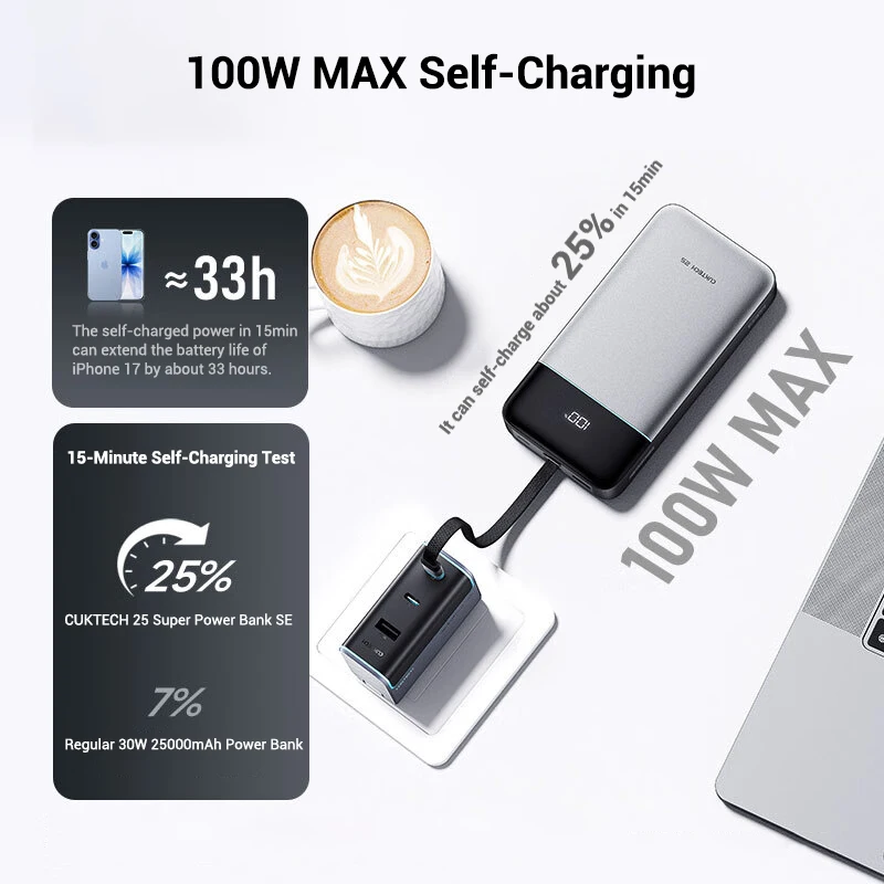 Pin Dự Phòng CUKTECH 25 SE 25000mAh 120W (CCC / 3C Certification, With Built-in Type-C Cable Screen Display, 1*Type-C + 1*USB-A port, Support 120W MAX Xiaomi Fast Charge, Flight-Approved)