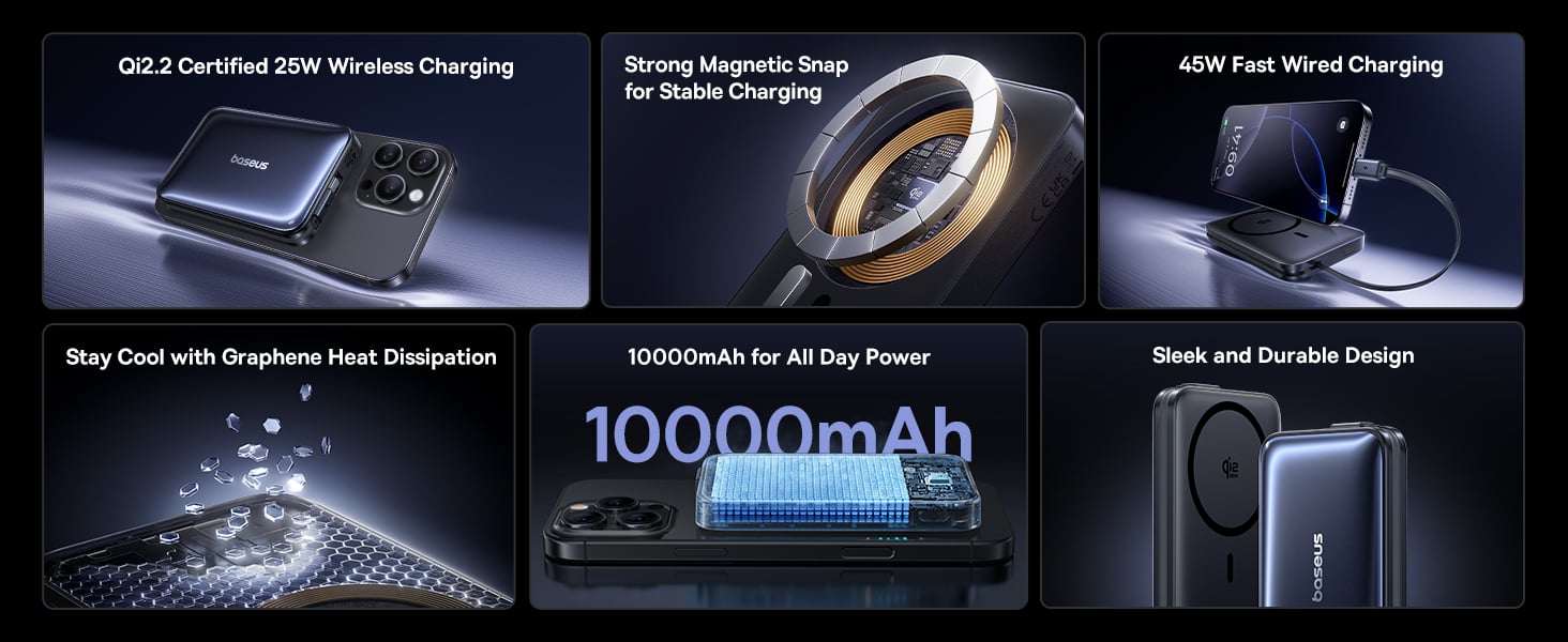Pin Dự Phòng Không Dây PicoGo AM61 10000mAh 45W (Qi2.2 25W Certified, with Type-C Built-in Cable)